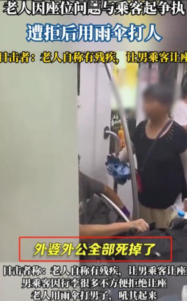 “如不严惩,天理难容!”浙江杭州,地铁上大妈要求拿行李的男子让座,男子拒绝后,大妈一怒之下拿雨伞打人,甚至质问男子“家里人都死了”,男子看她年龄大没有还手,谁料大妈不依不饶狠狠打男子,下一秒报应来了! 最近杭州地铁上的事儿,真是越想越气人!好好的让座美德,怎么就变成了动手打人、恶语伤人的导火索?这事儿不光让坐地铁的人看着揪心,更让大家伙儿对“让座”这事儿有了太多话想说。 8月27号上午,杭州地铁1号线上跟往常一样人不少。 一个小伙子背着大包小包的行李,累得直不起腰,找了个爱心专座就坐下歇脚。 谁知道没过一会儿,一位大妈走了过来,张嘴就要求小伙子让座,小伙子赶紧解释,说自己行李太多太重,站起来实在不方便,就没同意。 可这大妈立马就急了,掏出残疾证说自己是残疾人,指责小伙子不懂尊老爱幼,连个座都不让。 按理说,不让座好好说也行,可这大妈的火气上来就压不住了。 见小伙子没动地方,她直接拿起手里的雨伞,劈头盖脸就往小伙子身上抽,一边打还一边逼问:“让不让?让不让?” 小伙子被打急了,回了句“不让咋的”,这下更把大妈惹毛了。 她嘴里骂得越来越难听,甚至冒出“家里人都死了”这种扎心窝子的话。周围乘客都看呆了,小伙子好几次攥紧了拳头,可一看对方是老人,还是强忍着没还手,最后默默拎着行李走到了别的车厢。 这全程都被旁边的乘客拍了下来,发到网上后,评论区瞬间就炸了锅。 无独有偶,上海地铁9号线上也出了类似的事儿。 一个老人非得让一个女孩让座,说要给老伴儿坐。可那女孩坐的根本不是爱心专座,而且人家明明白白说自己身体不舒服,实在没法让。 老人不依不饶,指着女孩就吵,说“你都这么大了,给老人让个座怎么了”。 女孩委屈地说“你干嘛老欺负我一个女孩子”,两人就这么争执起来。 旁边有个小伙子看不下去了,自己站起来给老人让了座,可一边让座一边气呼呼地说:“人家不舒服不让座咋了?让是情分,不让是本分,你这么逼人家不对!” 这两件事儿往一块儿凑,就能看出问题在哪儿了。 杭州那大妈拿着残疾证当“尚方宝剑”,觉得自己要座天经地义,上海这老人更离谱,非把普通座位当成爱心专座,逼着身体不舒服的女孩让座。 他们都觉得“我年纪大/我有困难,你就必须让我”,可压根儿没想想别人是不是也有难处。 小伙子背着那么多行李累得够呛,女孩身体不舒服需要休息,这些都是实实在在的需求,凭啥就得为了别人的“需要”牺牲自己? 更让人没法接受的是处理方式。 杭州那大妈,不让座就动手打人,还用最难听的话咒人家家里人,这哪是要座,分明是耍横! 地铁是公共场所,不是谁嗓门大、年纪大就能随便欺负人的地方。 那小伙子也是好样的,好几次攥紧拳头都忍住了,没跟老人起正面冲突,要是换个脾气急的,指不定闹成啥样。可就因为他老实,就得受这委屈?这道理说不通啊! 事儿闹大后,杭州地铁也出来说话了,说关注到这事儿了,工作人员当时也引导乘客下了车,还呼吁大家文明乘车,遇到事儿找工作人员或者民警。 这话听着在理,可真遇到急眼的老人,工作人员没在跟前的时候,普通乘客该咋办? 总不能眼睁睁看着人被欺负吧?上海地铁那个小伙子的做法其实挺对,看不惯就站出来说句公道话,既没激化矛盾,也没让老实人受委屈。 法律上根本没规定必须给老人让座,让座是咱社会提倡的好事儿,可好事儿得办得漂亮。 你好好说,“小伙子能不能麻烦让个座,我有点累”,但凡能让的谁会不让?可上来就命令、就指责,甚至动手,这谁能接受? 之前北京地铁也出过类似的事儿,一个老人因为女孩不让座,拿拐杖在女孩腿中间乱捅,最后被警察拘留了。 这就说明,不管多大年纪,耍横犯法都得受罚。 说到底,坐地铁图的是平安顺利,爱心专座是为了方便真正有需要的人,不是某些人“耍特权”的地方。 年轻人该体谅老人,老人也得尊重年轻人,你有困难,别人可能也有难处。 真遇到让座的事儿,多份理解,好好沟通,别动不动就急眼、动手,要是对方实在不方便让,也别纠缠,地铁上让座的人多了,总有愿意帮忙的。 对此,你有什么看法?