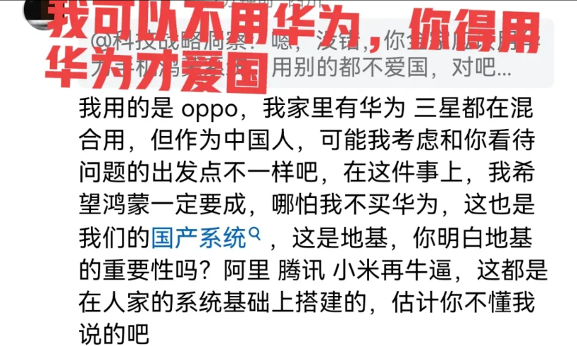 我写了很多华为技术的文章,但是我支持华为是因为华为对美国的态度、华为的领先的技术创新、以及华为坚韧不拔的韧性,而不是不买华为不爱国、不用鸿蒙不爱国。