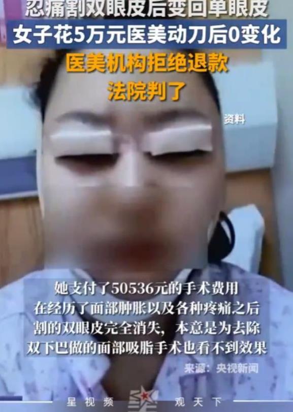 “花钱受罪!”7月18日北京,女子为了变美,去整容机构花5万余元,进行割双眼皮和面部吸脂手术。却没想到刀子动了,脸也疼了,消肿之后0变化。双眼皮没割出来,双下巴也在。女子觉得整容机构欺诈,光划刀子逗她玩。 "看看,这是我术前的照片,这是术后的,有什么区别吗?"梁女士(化名)指着手机里的对比照片声音里满是愤怒和无奈,镜子里的她依旧是单眼皮,脸部轮廓也没有任何改变,花了五万多块钱,挨了刀子受了罪,结果什么都没变。 而事情要从几个月前说起,梁女士在朋友圈看到这家医美机构的广告,号称是"全亚洲某医美领导品牌旗下公司"。 销售人员热情地接待了她,不断展示各种成功案例,"您看,我们是上市医美机构,技术和服务都是最顶尖的。"销售人员一边翻着宣传册,一边信誓旦旦地表示着保证效果。 梁女士心动了,毕竟上市公司总该靠谱些吧?销售人员趁热打铁推荐了"黄金微雕"面部吸脂项目。"这个技术是我们的专利,能精准塑形,效果立竿见影。"听着这些专业术语,梁女士觉得自己马上就能变成心目中的样子了。 50536元,这不是一笔小数目,但想到能让自己变美梁女士还是咬牙刷了卡,手术当天她满怀期待地躺在手术台上,麻药过后疼痛如期而至。医生告诉她这是正常反应过几天就好了。 然而当肿胀消退,纱布拆除梁女士彻底傻眼了,镜子里的自己和术前没有任何区别,单眼皮还是单眼皮,该有肉的地方一点没少,她找到医院理论,对方却推三阻四一会儿说恢复期还没到,一会儿说个体差异。 梁女士不甘心开始调查这家机构,不查不知道一查吓一跳,所谓的"上市医美"纯属虚假宣传,北京市朝阳区市场监督管理局已经对其进行了行政处罚,更让人气愤的是当初承诺的"黄金微雕"项目,在手术记录里根本找不到踪影。 网友们对此事议论纷纷。有人说:"现在的医美机构真是什么都敢吹,反正钱先收了再说。"还有人分享自己的经历:"我也被坑过,花了好几万,结果还不如不做。"更有人直言:"这种机构就该重罚,不然还会有更多人上当。" 后来梁女士决定维权到底,她收集了所有证据,包括宣传资料、转账记录、手术前后对比照片,一纸诉状将医美机构告上法庭,法院受理后安排了司法鉴定。 法院审理认为,该医美机构的行为构成了双重欺诈,一方面通过微博发布"上市医美"的虚假宣传,误导消费者;另一方面收了"黄金微雕"的钱,却没有实施相应的手术项目,这种行为严重侵害了消费者的合法权益。 最终法院判决医美机构不仅要退还部分医疗费用,还要按照手术费用的三倍进行赔偿,总计176000余元,这个判决给了梁女士一个公道也给整个医美行业敲响了警钟。 俗话说爱美之心人皆有之。但在追求美的道路上消费者更需要擦亮眼睛,选择正规机构核实相关资质,不要被华丽的宣传词汇迷惑,遇到问题要勇于维权用法律武器保护自己。 那么您怎么看待这件事呢? 信源:光明网