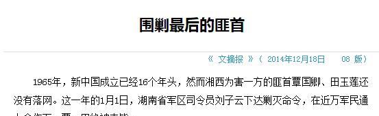 民国时期,覃国卿正抱着堂婶睡觉,堂叔突然回了家,见到惊慌失措的侄儿,堂叔怒不可遏,拔出手枪就要给他开瓢,谁料覃国卿眼疾手快,竟一把夺过枪将堂叔打死,又朝堂婶开了一枪! 提起上世纪三四十年代湘西山区的悍匪,有个名字就不得不提,他就是号称“中国最后一个土匪”的覃国卿。 这人出生于1918年,老家在湖南张家界大庸县青安坪那一片。 说起他的根儿,和他后来的所作所为,真是应了那句老话,啥样的老子养啥样的儿。 他爹就是当地有名的恶霸,在乡里横行霸道十多年,欺压良善,闹得百姓苦不堪言。 这样的日子一直熬到1934年,贺龙将军率领的红军来到当地,顺应民意,把这个作恶多端的恶霸给处决了,乡亲们总算能安生过日子了。 可覃国卿不这么想,红军对百姓是恩人,对他却是仇人。 那时他才十五岁,爹没了,娘也改嫁跑了。覃国卿恨上了红军,不想着学好,一心要给爹报仇。 他假装改过自新,跑去投靠在当地当保安队副队长的堂叔。 堂叔见他“可怜”,就尽力帮衬,让他当上了乡里自卫队的队长。 没承想,覃国卿恩将仇报。他当上队长不久,就做了一件禽兽不如的事,跟他自己的堂婶勾搭在了一起。 堂叔那个气啊,肺都要炸了。他决定把这叔侄情分断了,把这伤风败俗的俩人赶走。 万万没想到啊,覃国卿二话不说,竟把一手提拔他的堂叔给杀了。 杀了人,覃国卿的恶念更盛。他霸占了堂叔的家产和堂婶,什么“为父报仇”也抛到了脑后,光想着怎么捞好处、享清福。 后来,日本鬼子全面侵华,到处烧杀抢掠。 覃国卿趁着这乱劲儿拉起一帮人,他可不是去打鬼子,而是做起了山大王。 这伙人真是啥都干,烧房子、杀人、抢东西,无恶不作,闹得当地老百姓白天都不敢出门,晚上睡觉都睁着一只眼。 1948年,覃国卿领人到一户农家抢掠,看见了人家闺女田玉莲。 这姑娘长得清秀水灵,覃国卿一看就起了歹心,强行霸占了她,还把她虏回了自己的土匪窝。 刚开始,田玉莲还哭闹要回家,但覃国卿不断用金银珠宝、华服美衣哄她。 新中国成立后,剿匪成为头等大事。可覃国卿听到风声,不但不怕,反而更加嚣张至极。 1950年3月,覃国卿带着三百多个土匪,公然袭击了我军一支执行任务的部队。 一场恶战下来,我军12名战士不幸牺牲。 临走时,这伙暴徒还纵火烧毁了四十多间老百姓的房子,并且放狠话威胁:“谁敢去报信,我就杀他全家九族!” 党和政府立即加大清剿力度,决心彻底铲除这伙顽匪。 覃国卿一伙被逼进了深山,他的手下陆续落网。 可覃国卿和田玉莲这两个祸首,却跟长了翅膀的狐狸似的,硬是在湘西连绵的大山深处躲藏了整整十五年。 天网恢恢,疏而不漏。 1965年3月23日这天,躲藏在深山老林里的覃国卿和田玉莲两个悍匪,被人发现。 当地迅速组织力量,部队战士、民兵和周边群众,约七千多人将覃国卿可能藏身的几处山头重重包围,展开拉网式搜查。 覃国卿带着田玉莲,龟缩在一个当地叫“小缸钵”的小山洞里,这洞隐蔽得很,易守难攻。 他们想的是憋住气不吱声,能躲一会儿是一会儿。 然而,精神高度紧张的人,一点风吹草动就不得了。 覃国卿窝在洞里,忽然听到外面有人大喊:“找到了。” 他哪知道这其实是搜山的人在其他地方有所发现。 他当时脑子里那根弦就断了,以为是在喊自己藏身的位置,脑子一热,抬手就朝洞外开了一枪。 这一枪不要紧,等于直接告诉搜山队伍:“我在这儿。” 附近搜索的战士和民兵立刻循着枪声围了过来,大家朝着洞口喊话,命令他们放下武器出来投降。 可洞里的覃国卿,不仅不投降,反而一边破口大骂,一边又朝外打了两枪。 到了这步田地,覃国卿还是拒不缴枪。 搜山队伍忍无可忍,瞅准机会,把两颗手榴弹,顺着岩石的缝隙,稳稳地、准确地扔进了那个小小的“小缸钵”洞口! 顿时,他的左胳膊、胸口、还有半边脸,炸得是血肉模糊。洞外等待的战士们听到爆炸,又对着洞里猛烈开火。 这个在湘西地区祸害了老百姓几十年的土匪头子,身上连中数枪,当场就没气儿了。 躲在他旁边的田玉莲,被炸得当场就不能动弹了,众人冲进去把她揪了出来。 这个从受害者变成帮凶的女人,随后被押送回县城,经过审判,被依法处决。。 就这么着,覃国卿和他一手“改造”出来的婆娘田玉莲,在解放军和老百姓持续不断追捕十五年后,终于走到了他们血腥人生的尽头。 恶行终有报,岁月长河冲刷着每一段历史。覃国卿的故事像一面镜子,照见仇恨如何扭曲人性,贪婪怎样吞噬良知。 参考资料:文摘报
