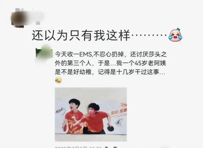 看到评论区里大家对莎头的这种喜爱之情,真是让人哭笑不得。 中国邮政和中国乒乓球协会又续约了,邮政快递的封面也随之更新。人物换了,动作变了,可球迷对莎头的喜爱却永恒不变。 在评论区看到球迷对莎头那种有些霸道的爱,既可笑又可爱,简直令人感动到落泪。 这位球迷变更了新款封面,只留下莎头,真是让人哭笑不得,这种做法也很独特,真佩服他的这份爱意,我们都很认同。 这几年邮政纸袋快递封面一直在变,这么一看,莎头两人真是厉害得很呢,而且他们并肩同行八年了,两个人都从未掉队。 身边的人换了一批又一批,但他们始终是他们自己。八年了,彼此一直在身边,同步成长,携手前行。 优秀的莎头,值得拥有更美好的明天,越来越好!