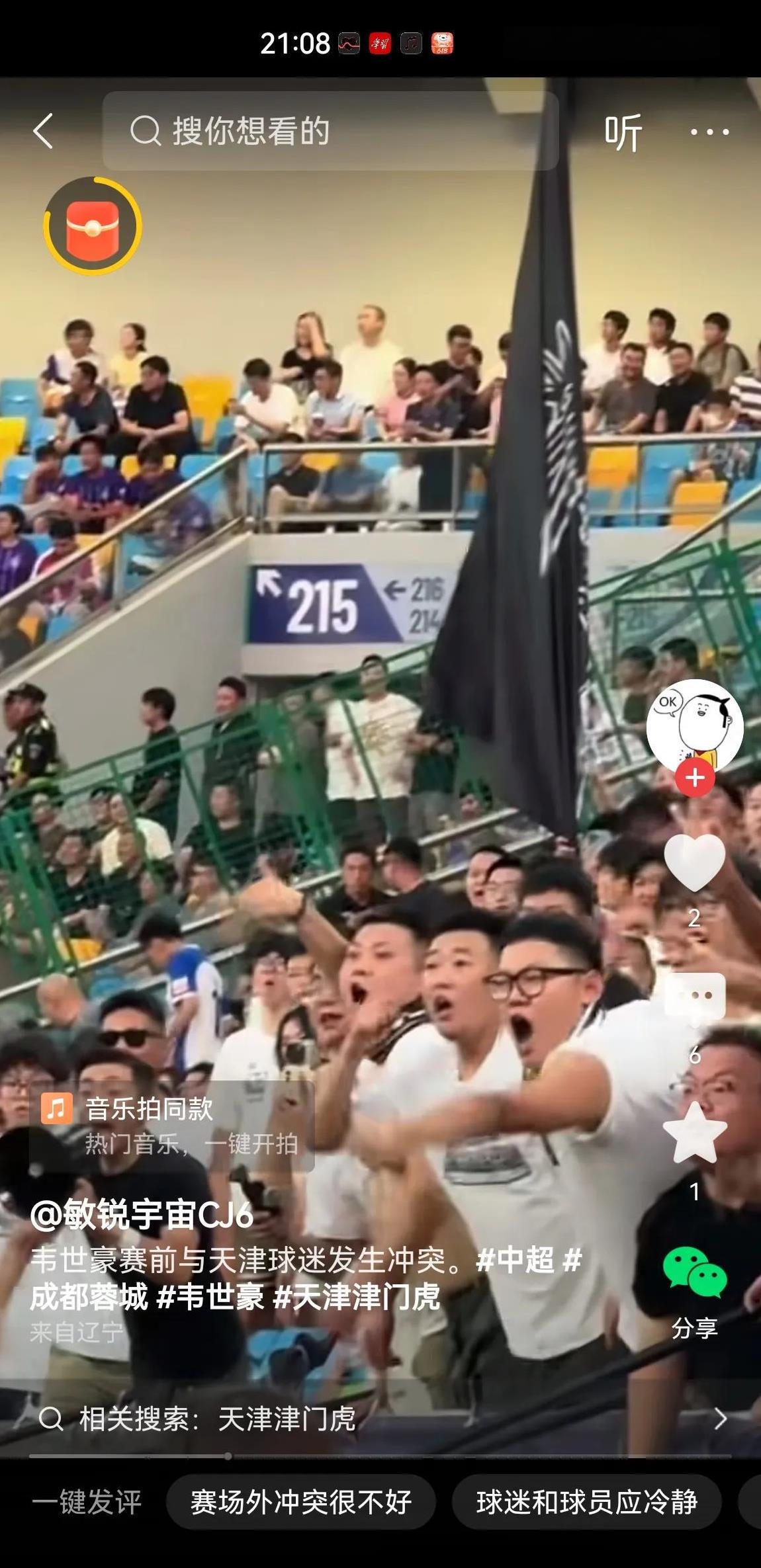 “京m”之后有“津m”! 今天中国足球超级联赛天津队主场对阵成都蓉城队,不知什么原因,成都蓉城队韦世豪和天津球迷发生口角,瞬间整个体育场响起了韦世豪xxx的刺耳口号,声音之大,节奏如此整齐看得出天津球迷还真是专业骂人高手!没想到比赛后期韦世豪罚进一点球后,赛场球迷又开m韦世豪,韦世豪两黄变一红退场时,全场再次有节奏的喊起xx韦世豪,以前看到北京主场工体著名的“京m”,没想到天津主场的“津m”也名不虚传!