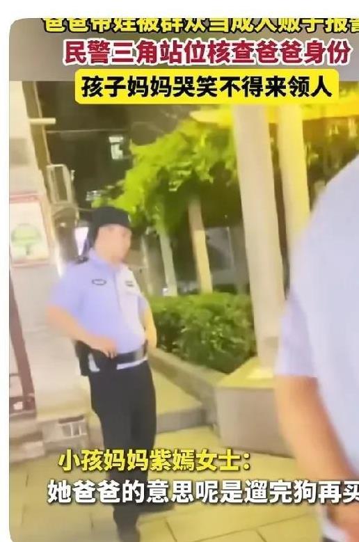 爸爸带娃,群众却把他当成了人贩子还报了警。孩子妈妈赶来领人时,真是哭笑不得。事情是这样的,小女孩跟着爸爸去遛狗,她非要急着先去买玩具,爸爸说遛完狗再买,小女孩不肯,急得哇哇大哭,路人还以为是这人贩子拐走了小孩呢,赶忙报了警,结果只是一场误会。
