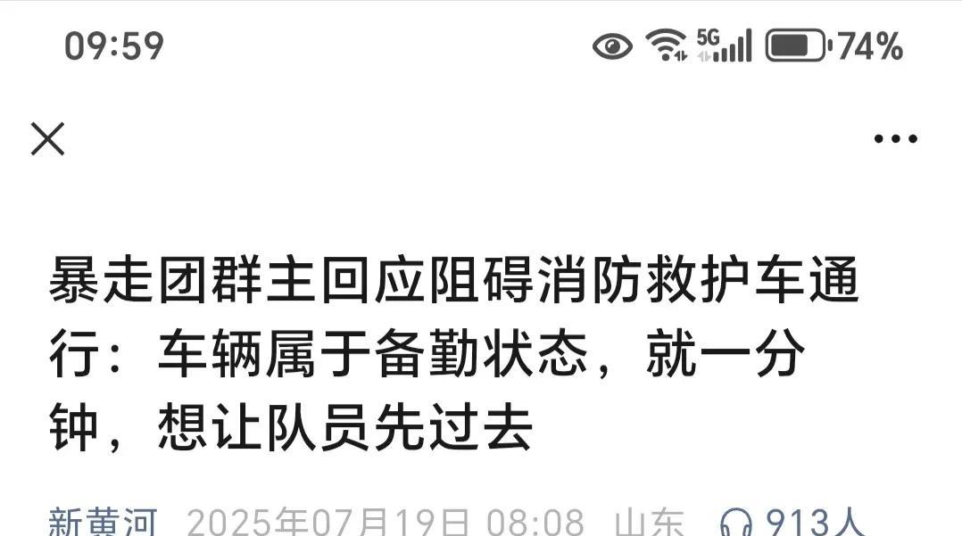 后续来了,“暴走团”群主回应阻碍救护、消防车:车辆属于备勤状态,就一分钟,为了队