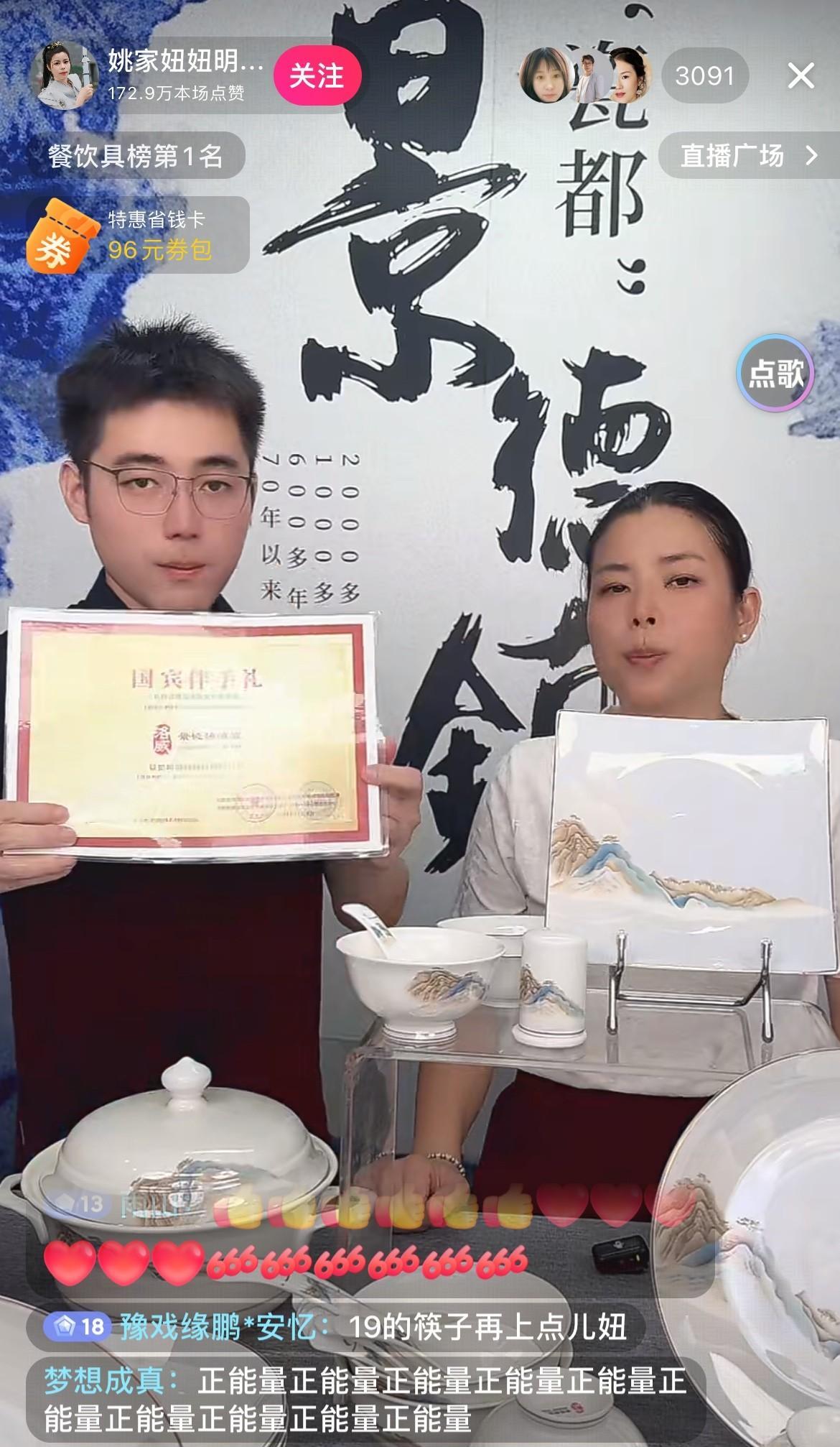 奥哟,老姚家人去景德镇卖瓷器了! 人气还不错呢,直播间摆的瓷器也是很精美,不知道