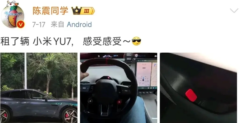 小米是真的不给车评人投商单吗,两个千万级的大V,闫闯自己买了YU7进行测评,陈震租了YU7进行测评。后者在SU7的时候已经和小米结下梁子了。闫闯说新车后门有异响,说自己被米粉恶意攻击,看这架势是打算和小米撕破脸啊。陈震没有买,租了一台,预告要感受感受,后面不知道还要出什么幺蛾子。