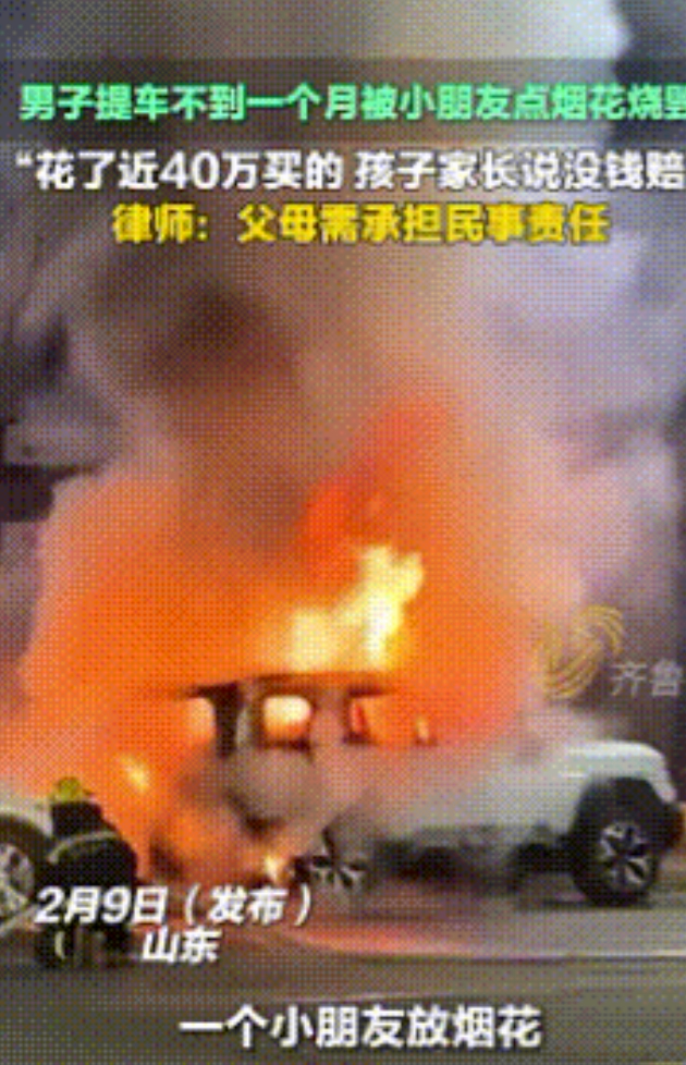 信源:红星新闻——小孩过年放烟花,男子40万新车被点燃报废