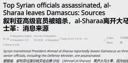 自从以色列发明了这种定点清除对方首脑的战术之后,战争结束得比以往任何时候都要快。 这不,以色列刚刚定点清除了朱拉尼手下的三名关键人物,朱拉尼就抛下叙利亚溜之大吉了。目前也不知道他跑到哪儿去了,总之是政权也不顾了,总统的位子也不要了。 原本就如一盘散沙的叙利亚,随着朱拉尼的出逃,变得群龙无首,估计战争很快就会终结。 设想一下,要是朱拉尼本人没有生命之虞,你觉得他会如此轻易地放弃即将到手的总统宝座而逃窜吗?肯定会用无数叙利亚人的性命来捍卫自己的总统之位,当然,名义上的口号必然是——“为了叙利亚的主权而战斗”。 上次的以伊冲突能够在12天内就结束,双方主要领导人不再安全也是其中一个因素。当战争从牺牲底层老百姓变为危及双方领导人的时候,战争就不会轻易爆发了。