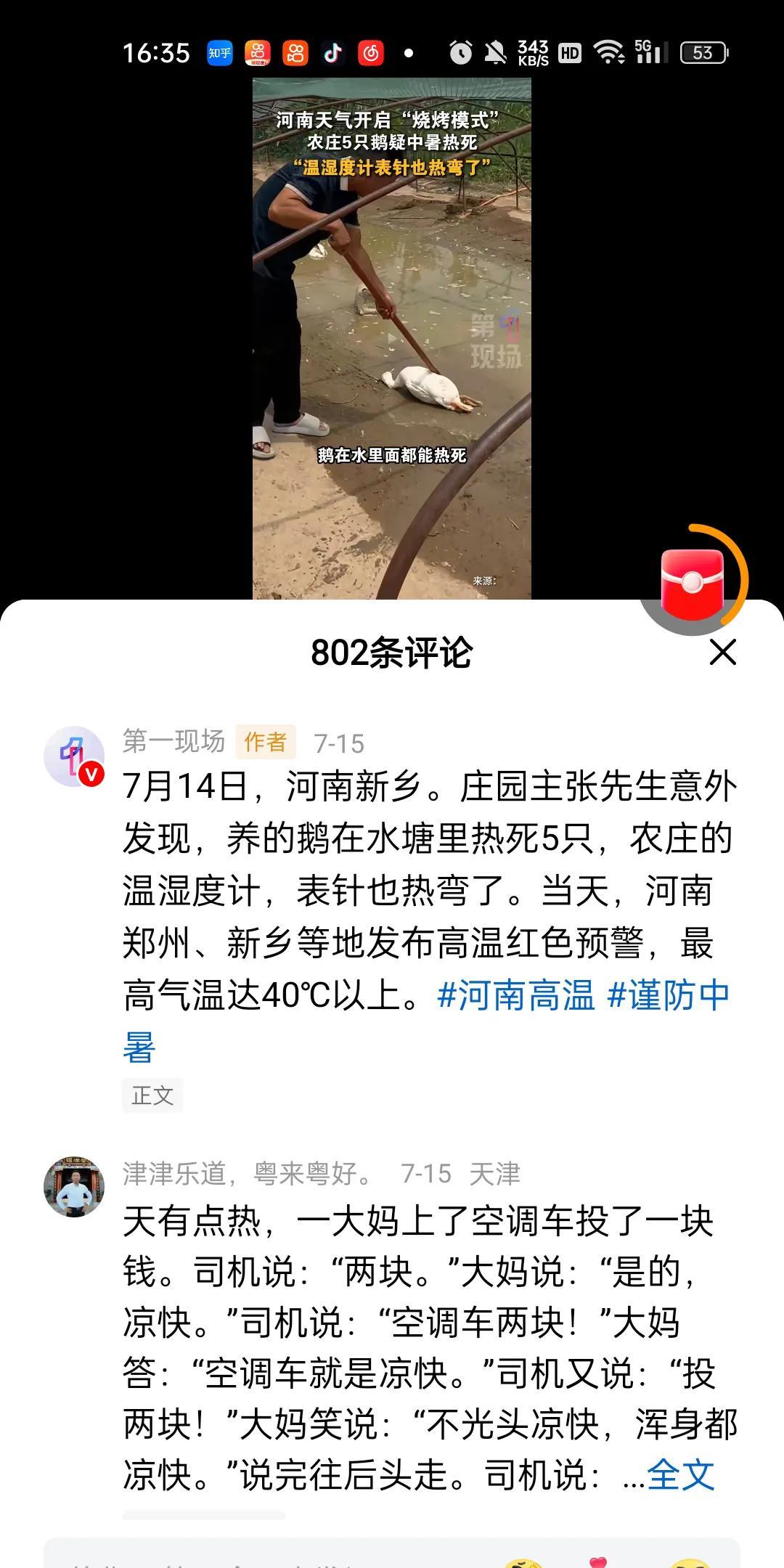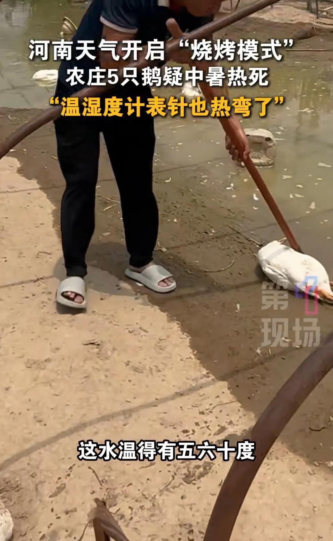 热炸了!河南新乡,男子养鹅十年头一遭遇“高温杀鹅”,5只鹅直接热死在水里,温度计