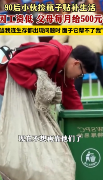 “凭本事赚钱不丢人!”河南洛阳,90后小伙因为每月工资太低,加上父母年纪越来越大,便决定另辟蹊径,靠捡瓶子赚钱,可没想到此举引起了争议,不少人认为捡瓶子太丢人,不料小伙的一句话让所有人醍醐灌顶! 王建军在洛阳一家小公司做行政,每月到手工资2800元,房租800,吃饭1000,交通费200,剩下的钱刚够日常开销,前几天母亲生病住院,他连医药费都凑不齐。 那天晚上,他路过小区垃圾桶,看到里面有不少矿泉水瓶,想起小时候家里穷,父亲经常带他捡瓶子卖钱的往事,他犹豫了一下,还是弯腰捡了起来。 一个晚上下来,他捡了三大袋瓶子,卖了18块钱,虽然不多,但总算是个补贴。从那以后,他每天下班都会绕道去几个固定的地方捡瓶子。 刚开始确实不好意思,有次正捡着,碰到了高中同学,对方愣了一下,然后假装没看见快步走开了,王建军说那一刻特别尴尬,但转念一想,自己又没偷没抢,有什么好丢人的。 他把这段经历拍成视频发到网上,本意是想记录生活,没想到评论区炸了锅,有人说他作秀,有人说他励志,还有人质疑他是不是在卖惨博同情。 其实王建军的情况并不是个例,据废品回收站的老板透露,现在来卖瓶子的年轻人越来越多,有的是兼职补贴家用,有的是失业后的临时过渡,一个矿泉水瓶能卖一毛钱,一天捡个两三百个,就是二三十块钱的收入。 住在王建军隔壁的张阿姨说,经常看到他晚上十点多还在小区里转悠找瓶子,有时候还会帮忙把垃圾分类做好,她觉得这小伙子挺实在的,不像有些年轻人眼高手低。 王建军的同事小李也知道这事,他说王建军白天工作很认真,从来不迟到早退,下班后去捡瓶子,也是为了多赚点钱孝敬父母,这有什么好笑话的呢。 其实捡瓶子这事,早就不是什么新鲜事了,在很多城市,都有专门的“瓶子大军”,他们有的是退休老人,有的是下岗工人,也有像王建军这样的年轻人。 回收站的数据显示,一个中等城市每天能回收几十吨的塑料瓶,按照现在的价格,这是一个不小的市场,有些专业的拾荒者,一个月能赚三四千块钱。 环保专家表示,捡瓶子其实是资源回收的重要一环,这些看似不起眼的劳动,为城市的垃圾分类和资源循环做出了贡献,从这个角度看,捡瓶子不仅不丢人,反而值得尊重。 王建军说,他不指望靠捡瓶子发财,只是想在力所能及的范围内多赚一点,等父母的医药费还清了,他打算报个培训班学点技能,争取找份工资更高的工作。 你怎么看待王建军捡瓶子这件事?如果是你,会放下面子去做这样的