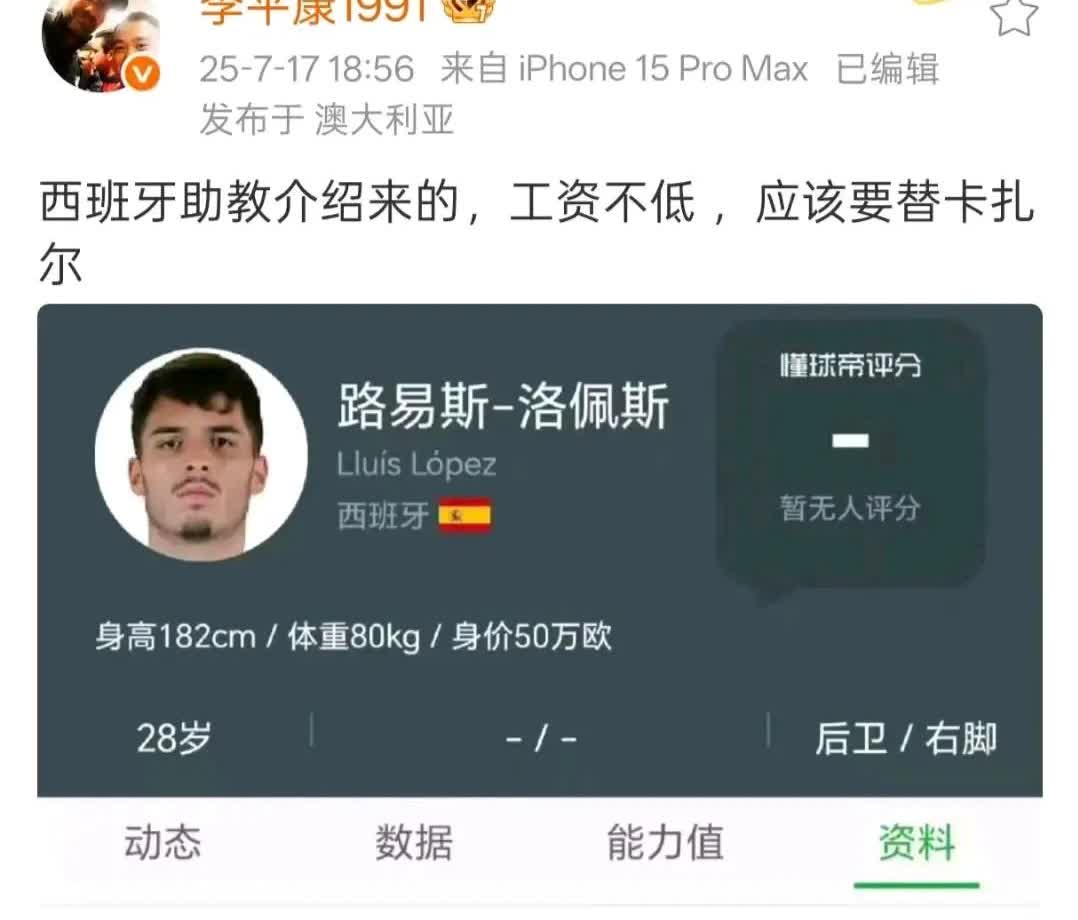 德转:山东泰山签下西乙后卫洛佩斯!泰山队更换中后卫或另有目的。 卡扎尔表现中规