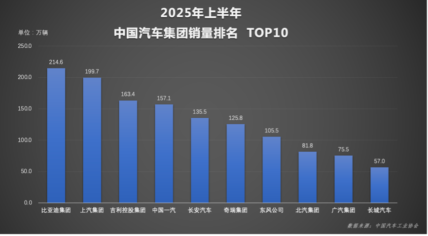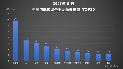 **比亚迪6月及上半年销量双夺冠**,再次彰显其在中国汽车市场的领先地位。2025年6月,比亚迪以38.3万辆的集团销量蝉联榜首,单一品牌销量更达34.3万辆;上半年总销量突破214.6万辆,成为唯一超200万的车企,王朝+海洋系列贡献197.2万辆,稳居销量冠军。海外市场同样亮眼,上半年出口47.2万辆,同比增长132%,高端品牌与商用车亦表现强劲。