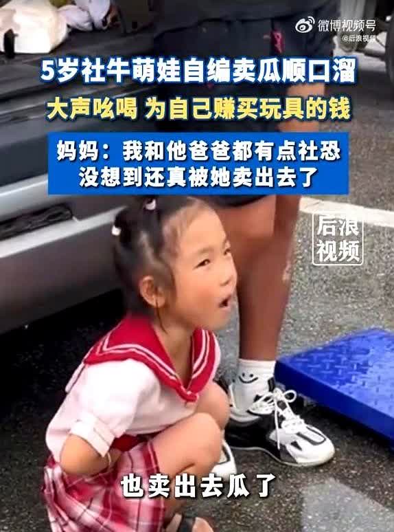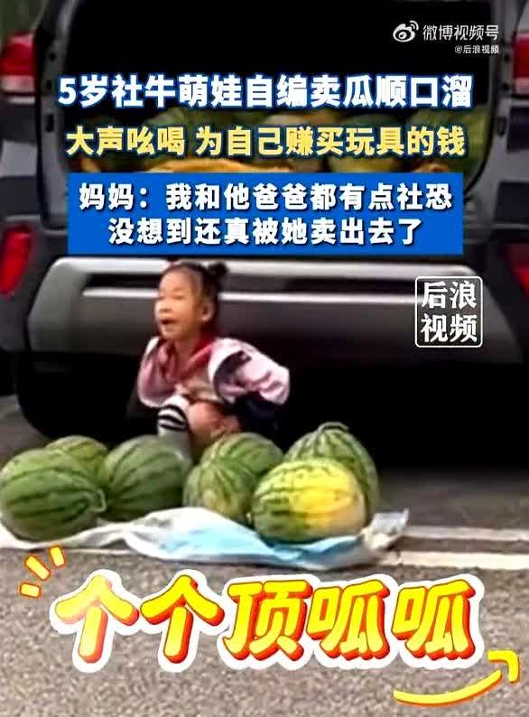 “给父母上了一课!”近日,贵州,男子地里西瓜结的太多吃不完,5岁的女儿就建议拿到集市上卖,可由于父母都比较社恐,女孩就独自在雨中卖西瓜,大声吆喝着自己编的顺口溜! 没想到,路人听到小女孩的吆喝真的买了西瓜。 网友:希望孩子长大后也能这么活泼。 不过要说最绝的还是小姑娘自创的顺口溜“西瓜甜,西瓜沙,不甜不要钱呀”,这押韵的调调配上脆生生的童音,搁谁听了不得停下瞅两眼? 上次见这么会吆喝的还是菜场卖糖葫芦的大爷,人家喊“冰糖葫芦甜又脆”,这娃直接整出个双押来。 别说小孩了,现在好多大人摆摊都只会干巴巴喊“便宜卖了”,要我说真该跟这丫头学学怎么抓人耳朵。 上次我家楼下水果店搞活动,老板儿子也学着编了句“芒果香,荔枝甜,不买后悔一整年”,结果当天销量翻倍——看来这天生带货的灵气,还真不分年龄啊!