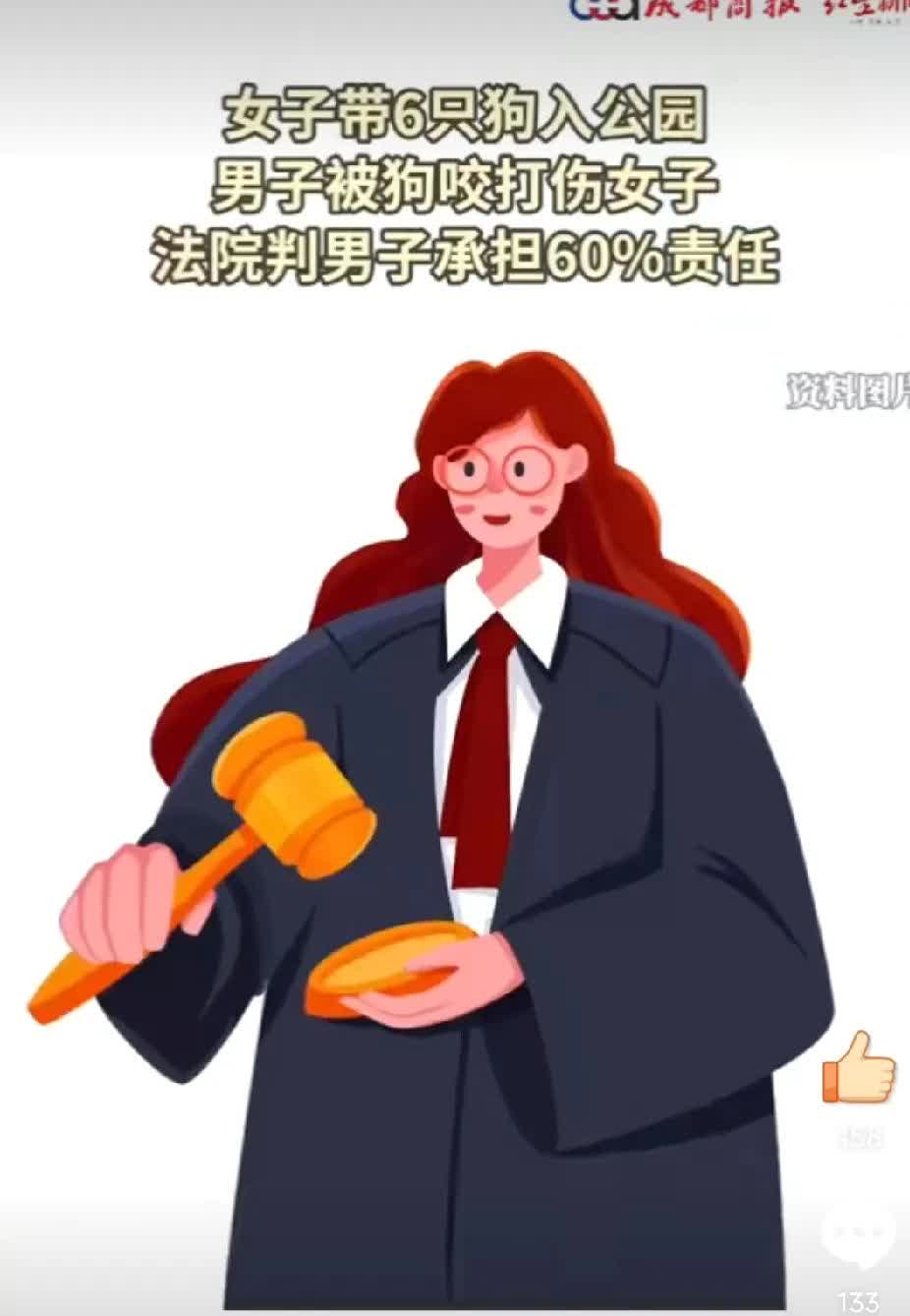 似乎又多了一条生财之道。 女子带6只狗去公园玩,她的狗咬伤了在旁边打电话的男子。 男子被狗咬之后用石头打狗。女子护狗心切,与男子发生冲突,被男子打伤了牙齿和上唇。男子打了疫苗,住院8天。 事后,法院判决男子承担60%的责任,应赔偿女子11588.65元。女子也有过错,应赔偿男子1584.31元。 这样算下来,带狗咬伤男子的女子净赚10004.34元。 此案已经二审结案。