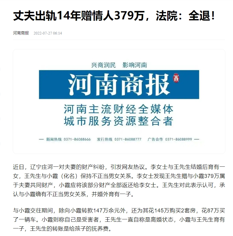 法院判得不公平,应考虑非婚生子女的权益。毕竟379万是夫妻共同财产,有一半是王成的,他应该有处置权,不能让刘霞一个人承担责任。法律应当有力度,但应该也有温度。不能把人逼到绝路,如果当事人被逼急了,采取过激手段,可能又要发生一起人间悲剧。