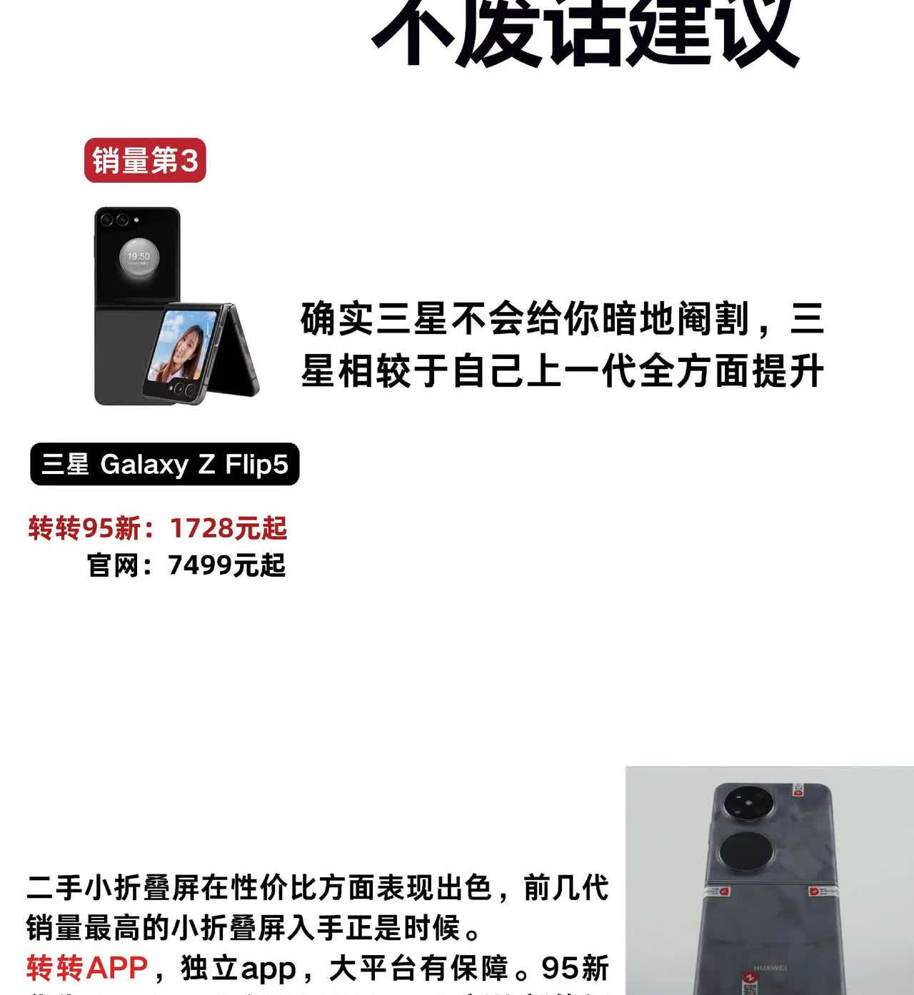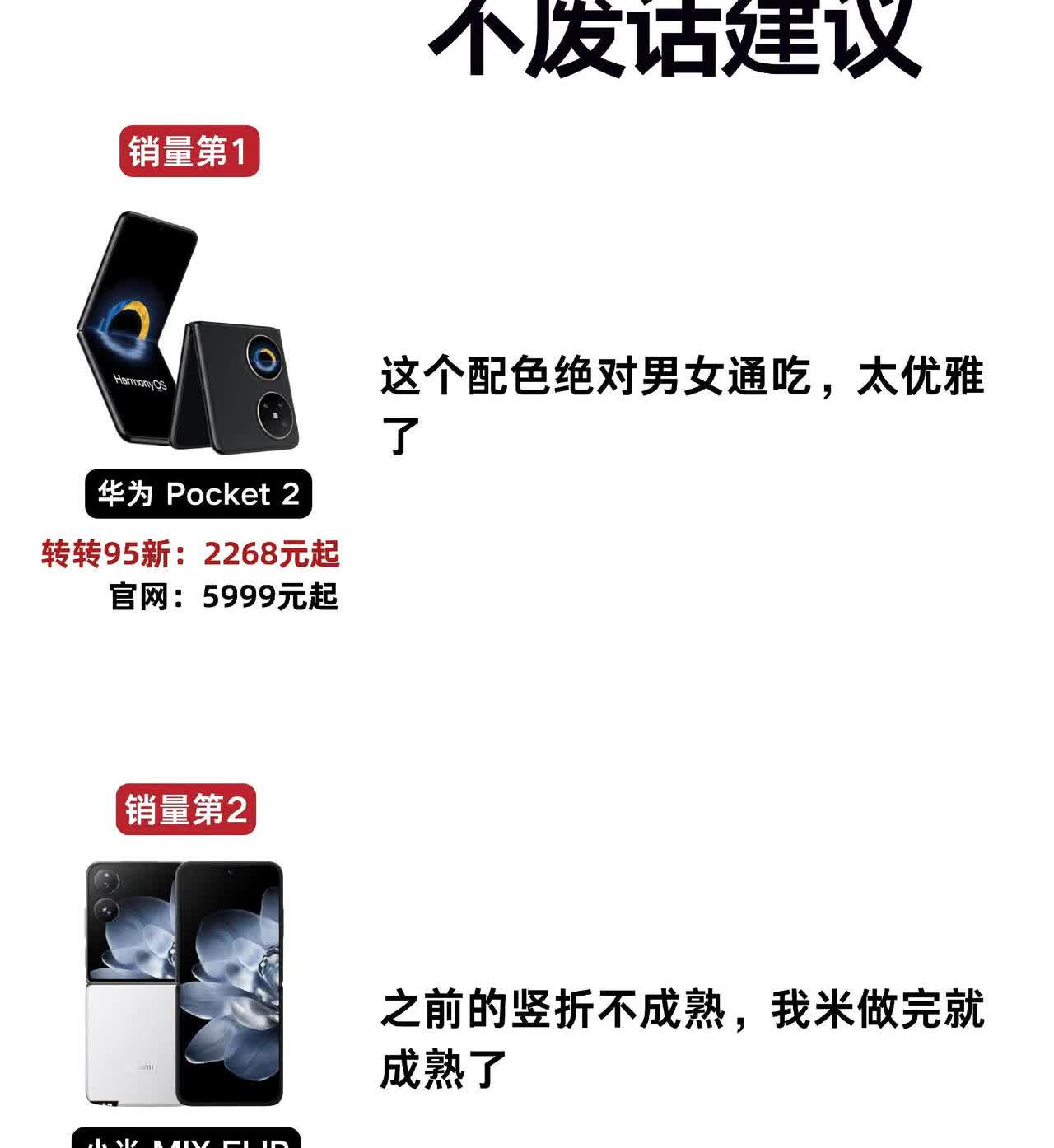 3款很火小折叠手机,怎么选?华为 Pocket 2小米 MIX FLIP三星 Galaxy Z Flip5