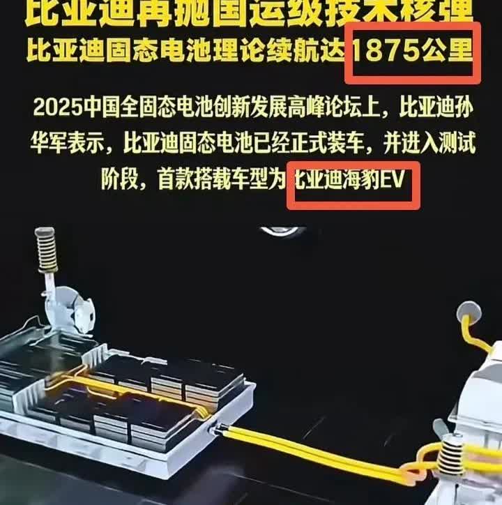 王传福现在估计是睡不好了! 他睡不好的不是技术搞成了, 也不是新车要出来了, 而是这量产的风声放出去,整个市场要提前翻天。 王传福这次真的把家底亮透了。 1875公里续航, 刺穿也不起火, 零下40度只缩一成, 12分钟充的电能跑1500公里。 最关键的,材料成本能降那么多。 东西还没大规模装车, 但对手的底牌已经被看清了。 电池一旦铺开,成本优势上来, 车价压下去是必然。 那些还在赌液态电池、玩补能的厂家, 窗口期可能就剩这两年多了。 技术真到位了,市场只能服气。 比亚迪固态电池