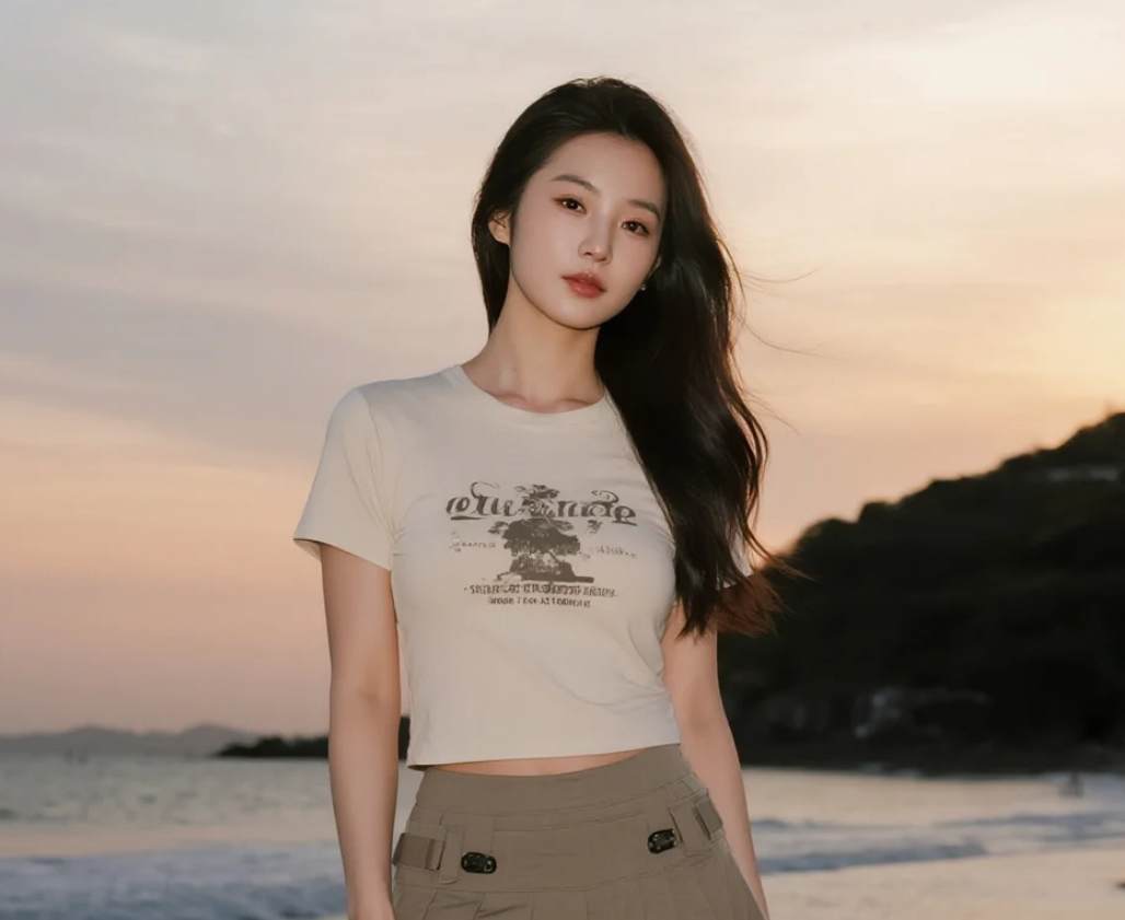 夜幕前的海边诗篇:记录下她的每一个笑容