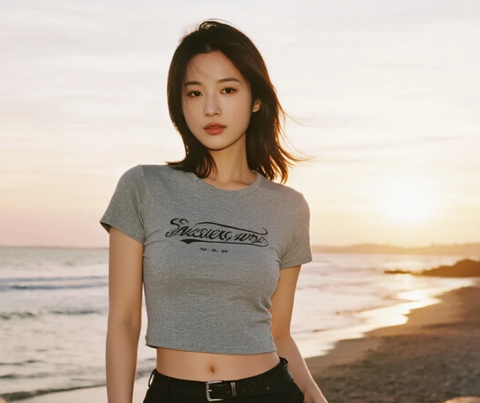她站在海边回眸一笑,仿佛晚霞都为她停留