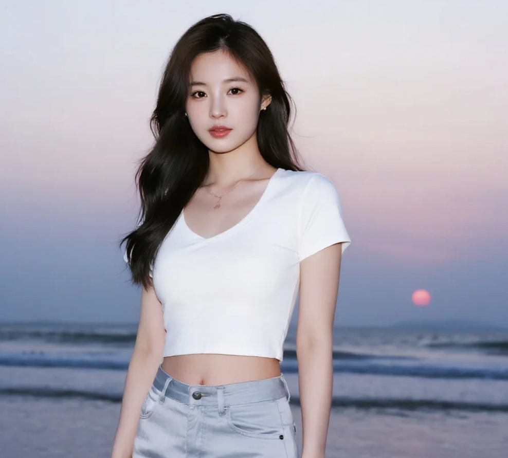 她站在海边回眸一笑,仿佛晚霞都为她停留