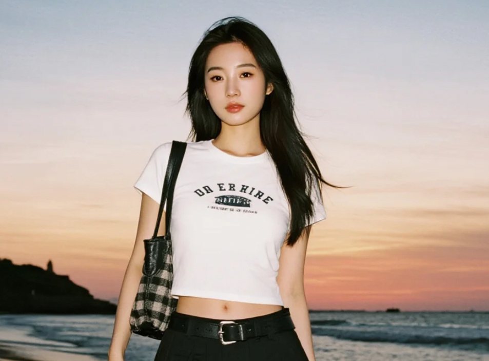 她的笑容,点亮了黄昏的海岸线