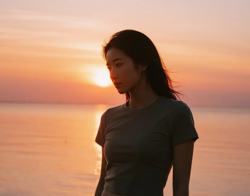 在这片碧海蓝天中,她用微笑点亮了整个世界