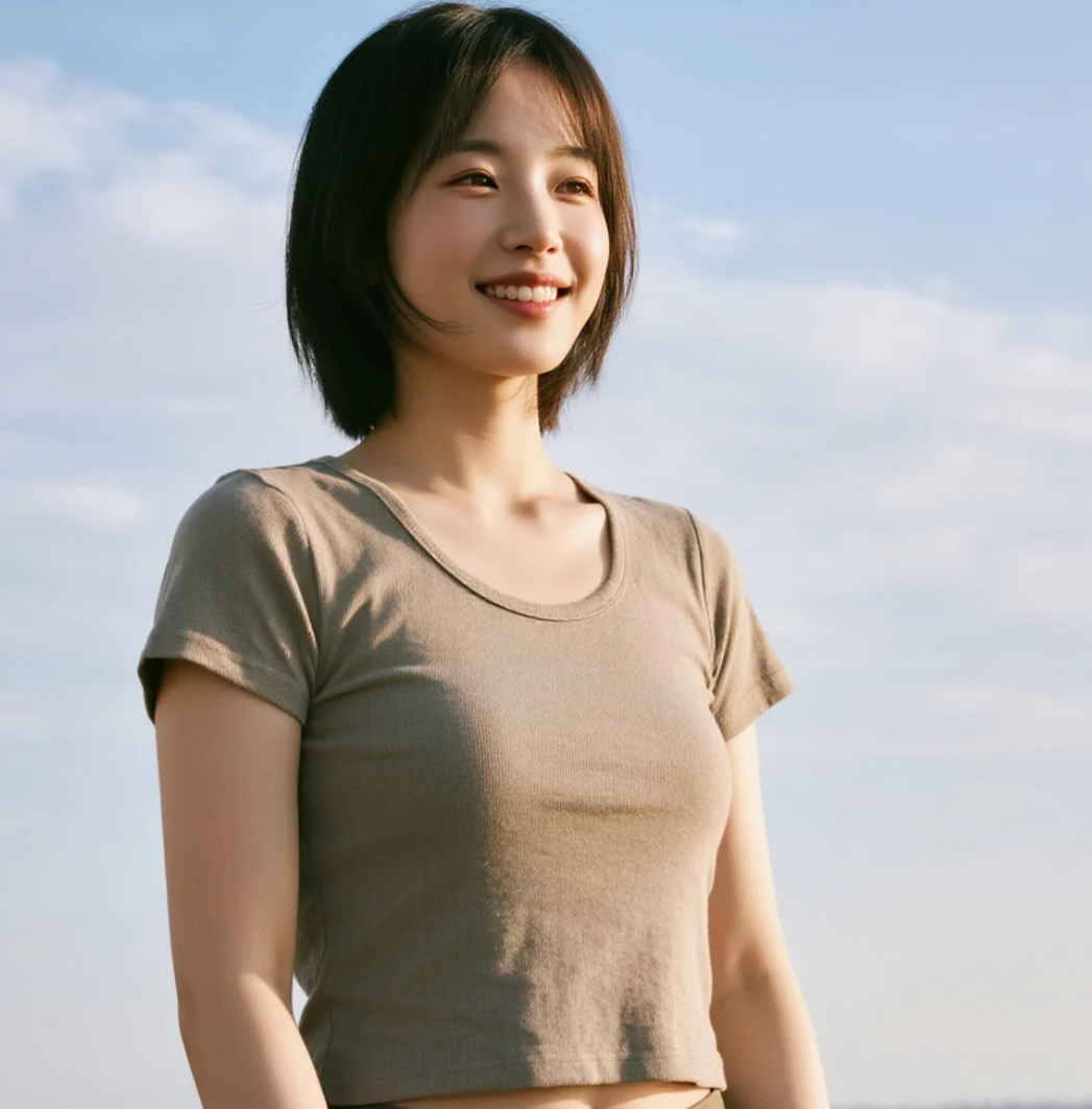 在这片碧海蓝天中,她用微笑点亮了整个世界