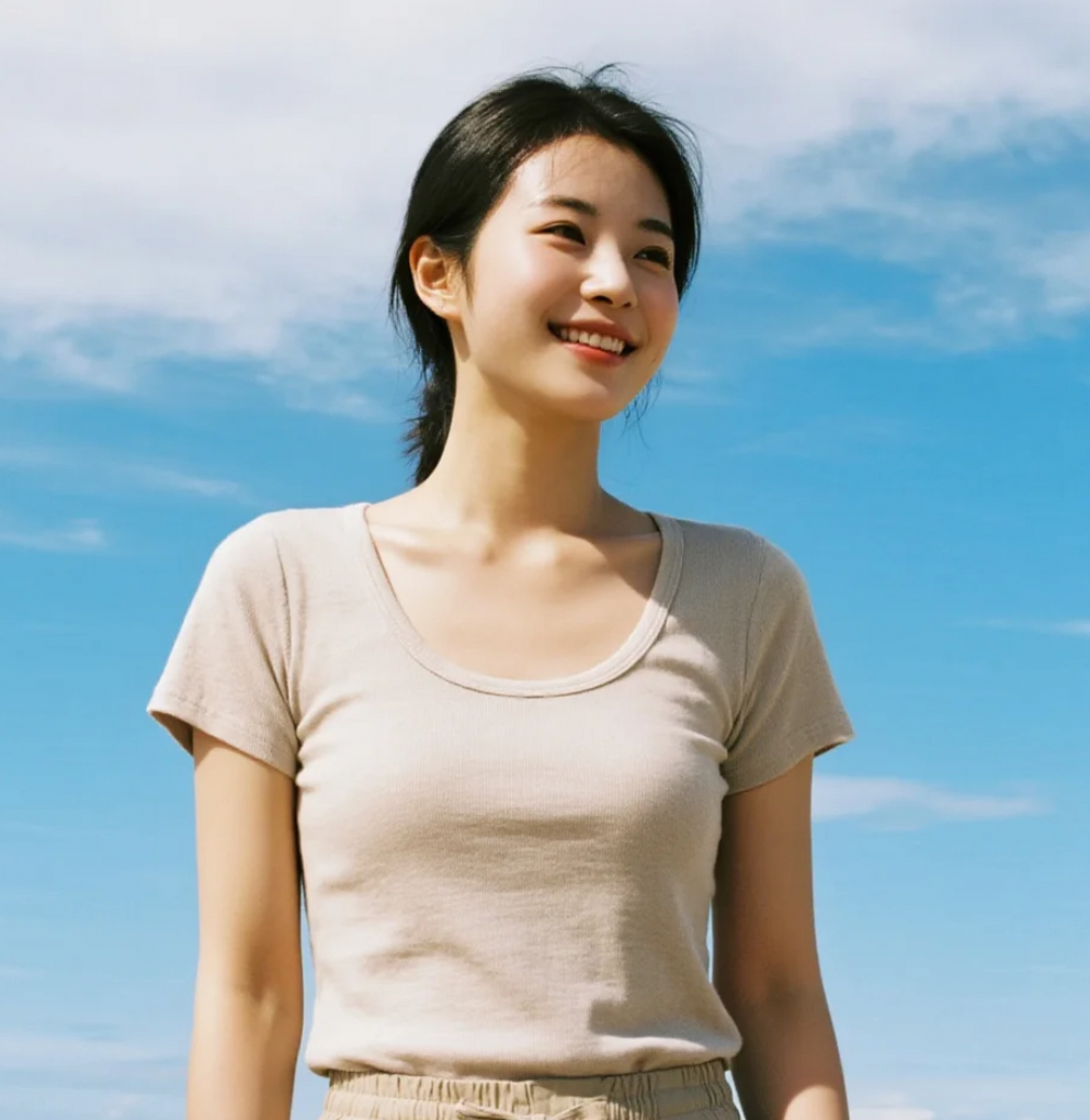 那一抹微笑在蓝天白云下,宛如清晨的第一缕光