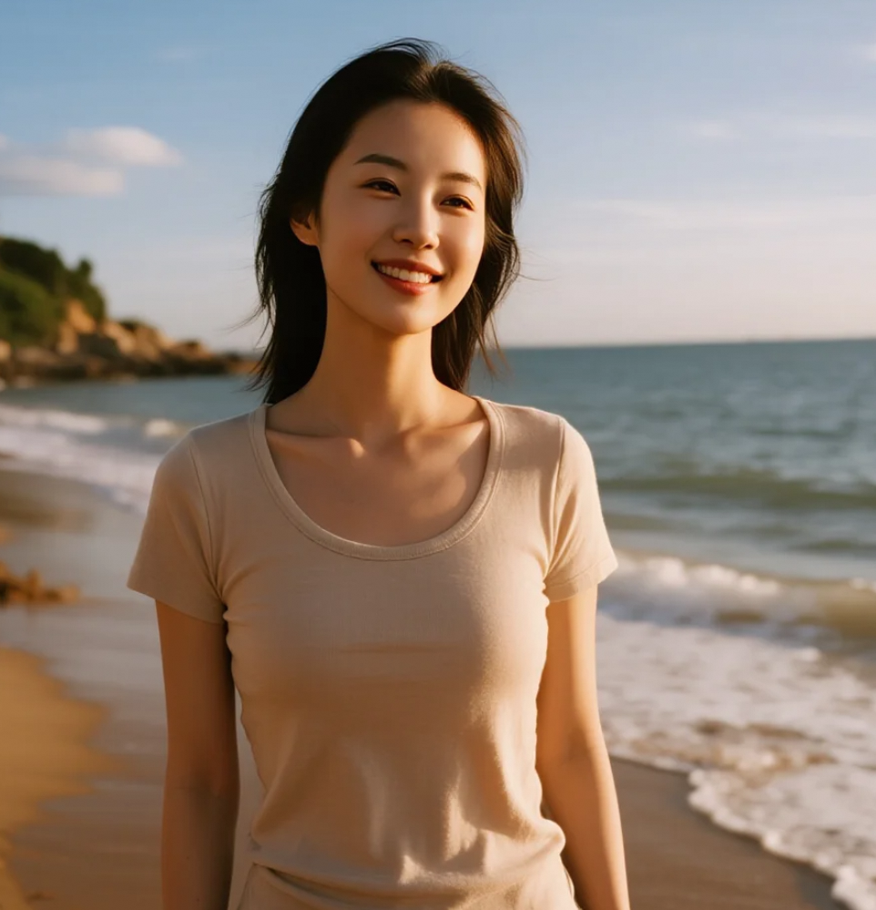 在这片碧海蓝天中,她用微笑点亮了整个世界