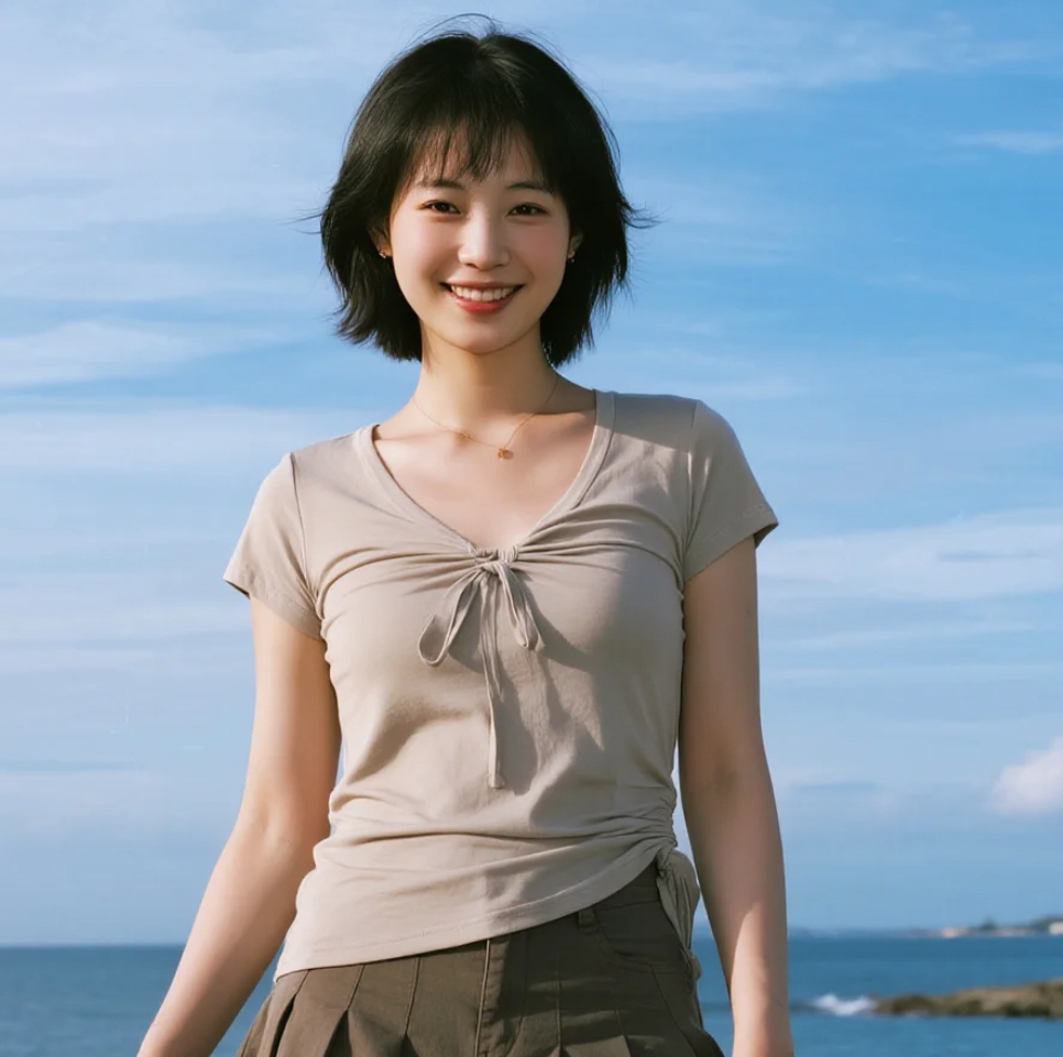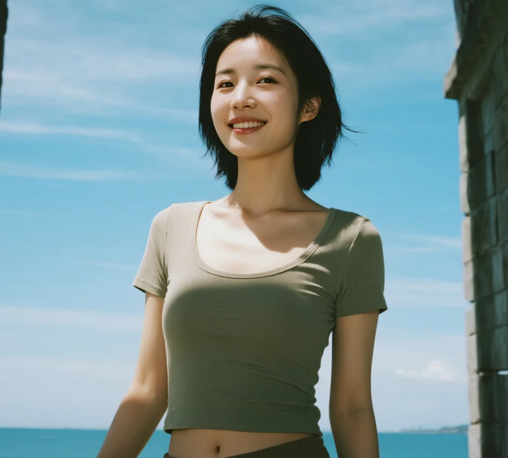 在这片碧海蓝天中,她用微笑点亮了整个世界