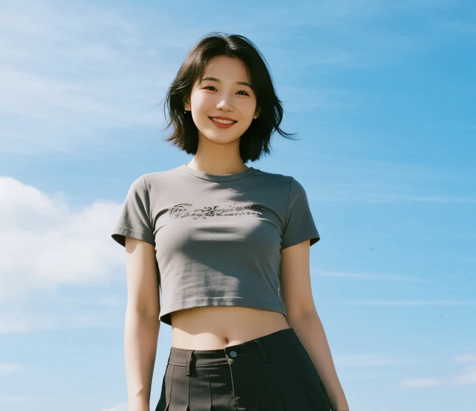 她在蓝天白云下展露的笑容,足以照亮整个世界