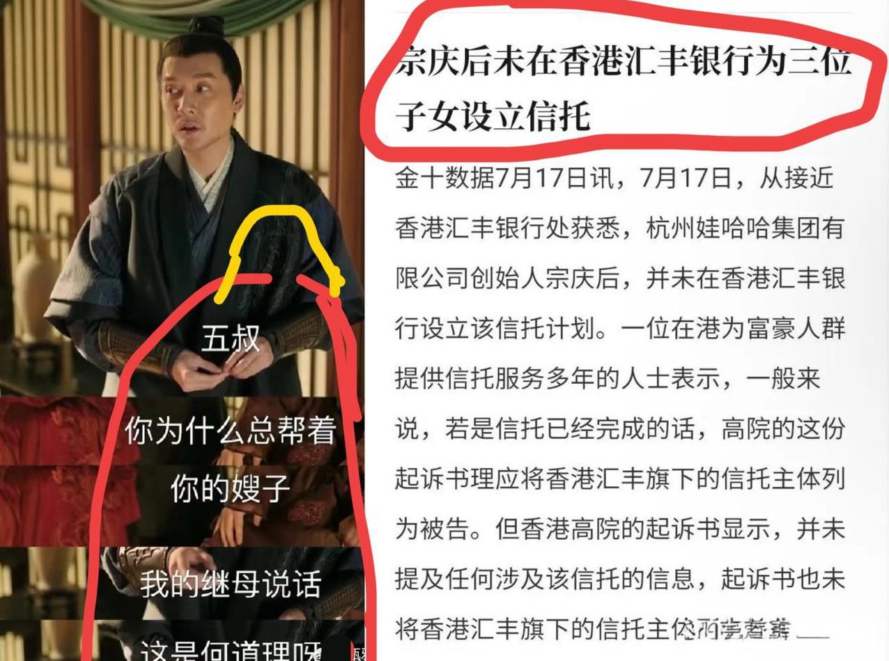 汇丰银行恨不得比宗馥莉更急于澄清: 宗庆后未以个人名义在汇丰设立信托。 汇丰可不想断了信托这棵摇钱树。 毕竟信托资产的取出,得严格按信托合同和法律来,比如看受益人资格、分配条件,不是能"随意"动的。若真像传闻说的能随便取,那就像没密码却能盗刷别人的银行卡,确实离谱。 对汇丰来说,信托业务的专业性和信誉是根本。被这种没证实的传闻缠上身,肯定得赶紧表态。毕竟它在全球信托布局广,名声直接影响生意。要是"宗庆后设信托且资金被随意转走"的不实消息传开,外人难免怀疑其管理规范度,进而影响大客户的信任,那损失可不小。#娃哈哈继承案# #宗馥莉遗产争夺# #娃哈哈遗产之争# #娃哈哈财产之争#