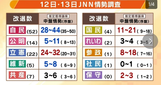 因此从目前的局势来看,自民党的失败已成定局,但“大败”还需要观察。从战后日本自民党的历史来看,经历过众议院少数或者参议院少数的局面,但在两院均成为少数派,这在历史上还是第1次。如果这样的话,日本政坛恐怕会出现以下几个重大变化: 首先,石破茂可能会引咎辞职,重新启动自民党大选,高市早苗成为下届首相的可能性较大;