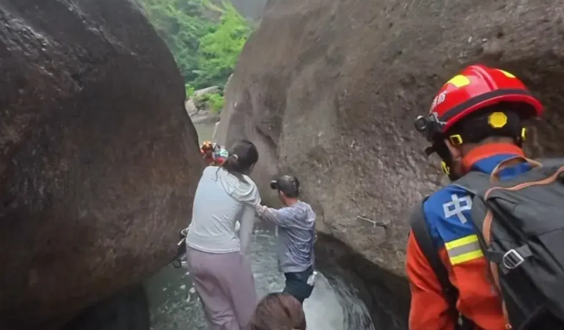 7月16日,乐清湖雾镇双龙谷九名驴友(2男7女)原本计划打卡山野美景,却因突发暴雨被困深山。
