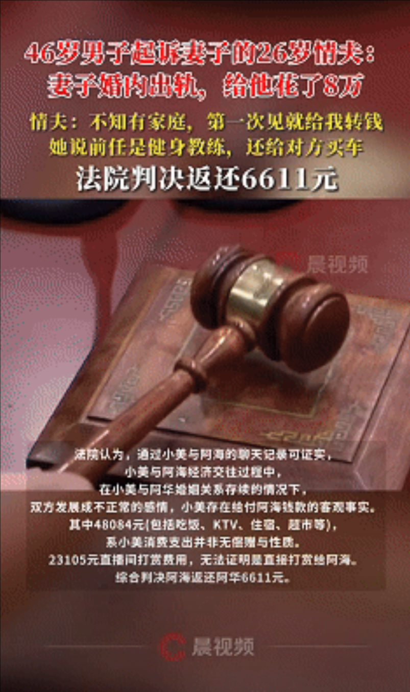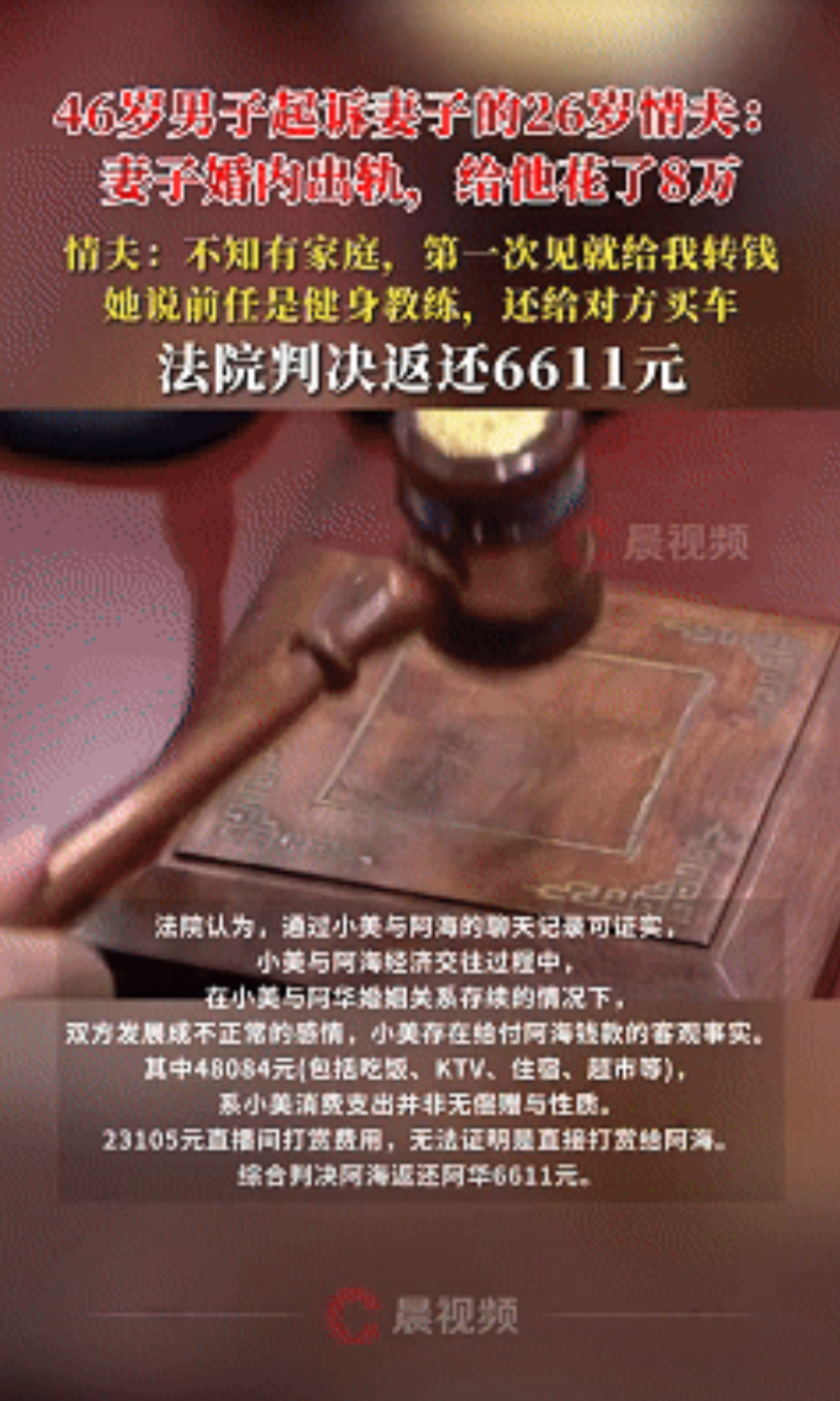 小美一个月给外人花8万,搁谁家都是天大的窟窿。法院判退6000多块,看着不多,但给所有夫妻提了个醒,钱是俩人一起挣的,大笔往外花就得商量着来。甭管是“资助”还是“打赏”,只要动的是家里老本儿,另一半就有权说不。