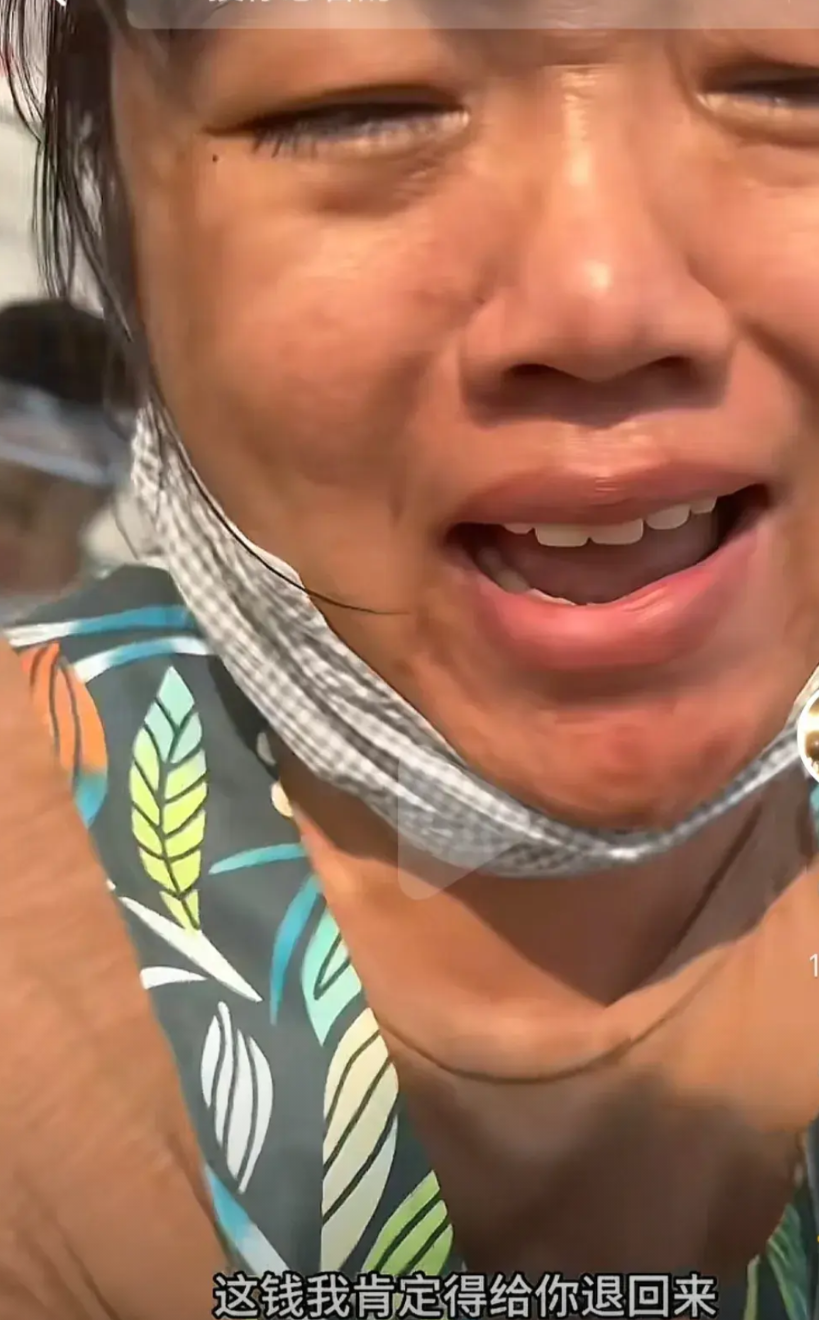 这时,趁女子没注意,男子掏出手机就钱,“收款50000元……”,听着语音播报,女子顿时泪流满面,忙去阻拦: