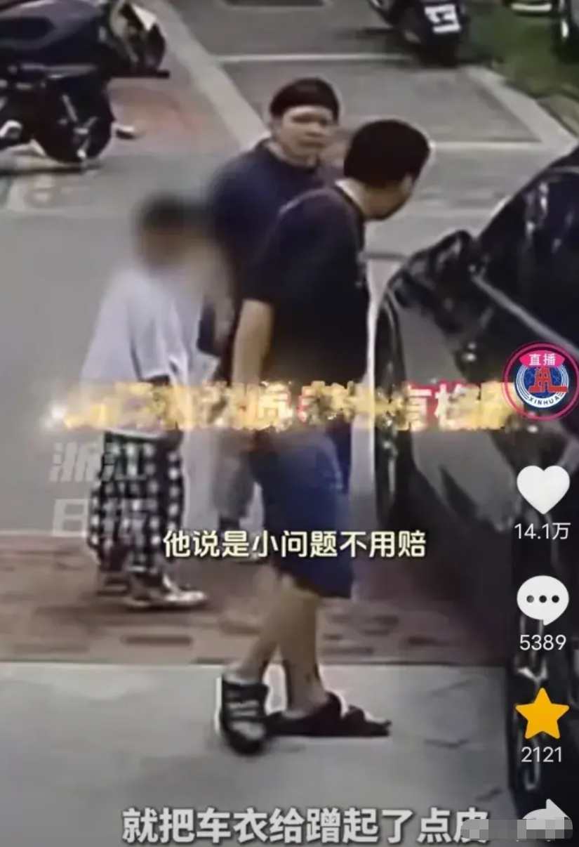 女子红着脸解释道:“实在不好意思,我儿子不小心把车刮了,麻烦您跟我去看一下。”