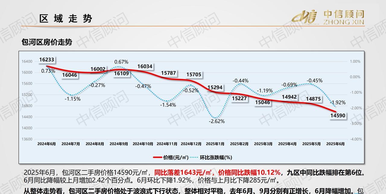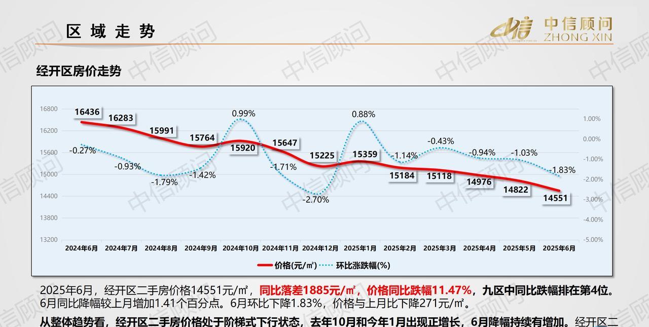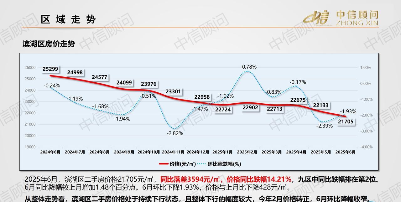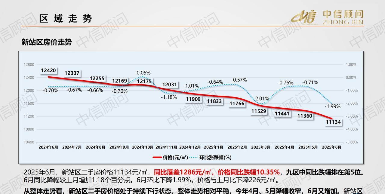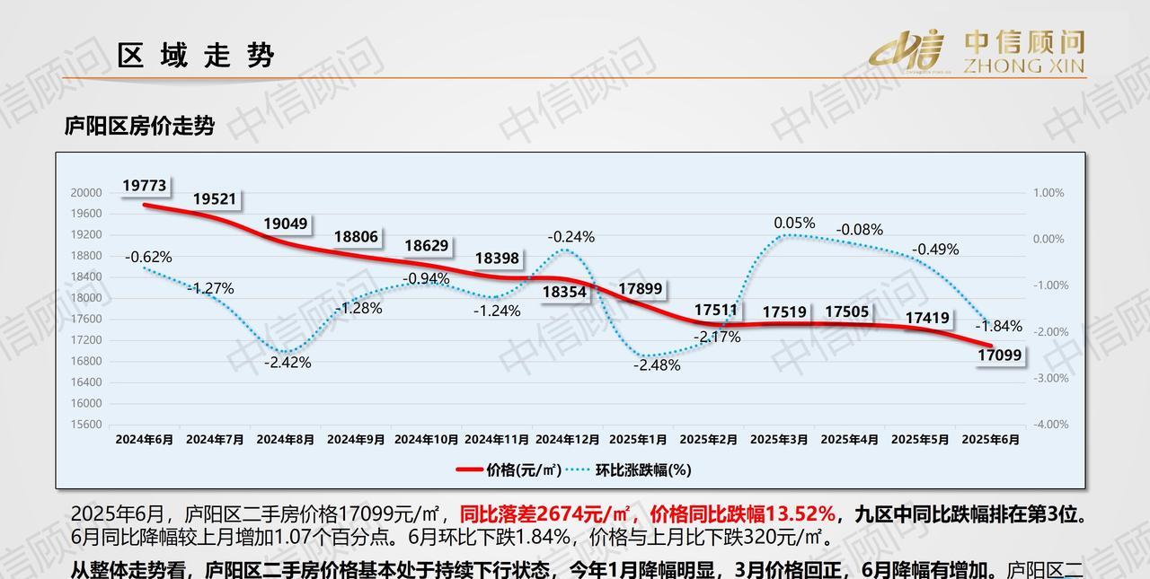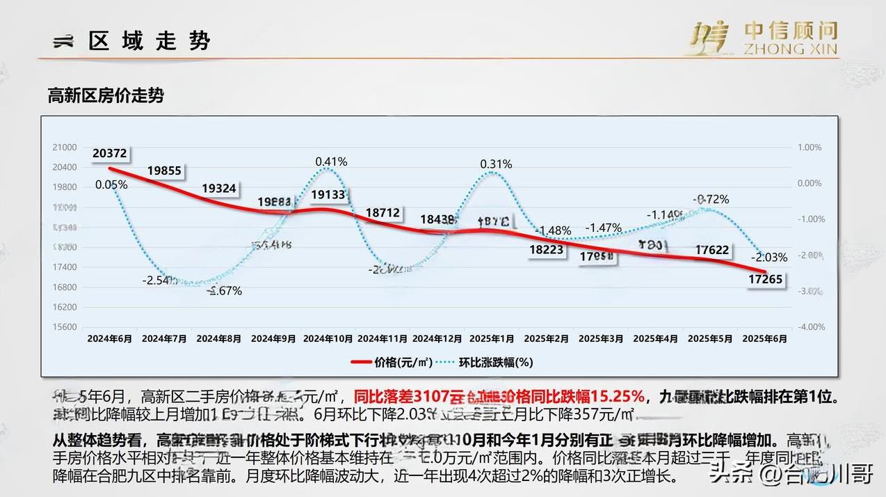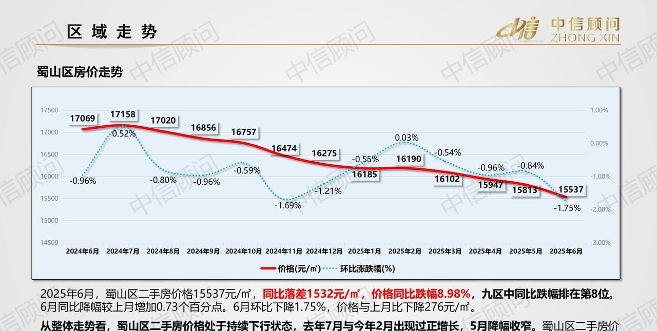 合肥市区近一年二手房价格走势。 6月,从整体同比看,合肥市九区市场,二手房价格全