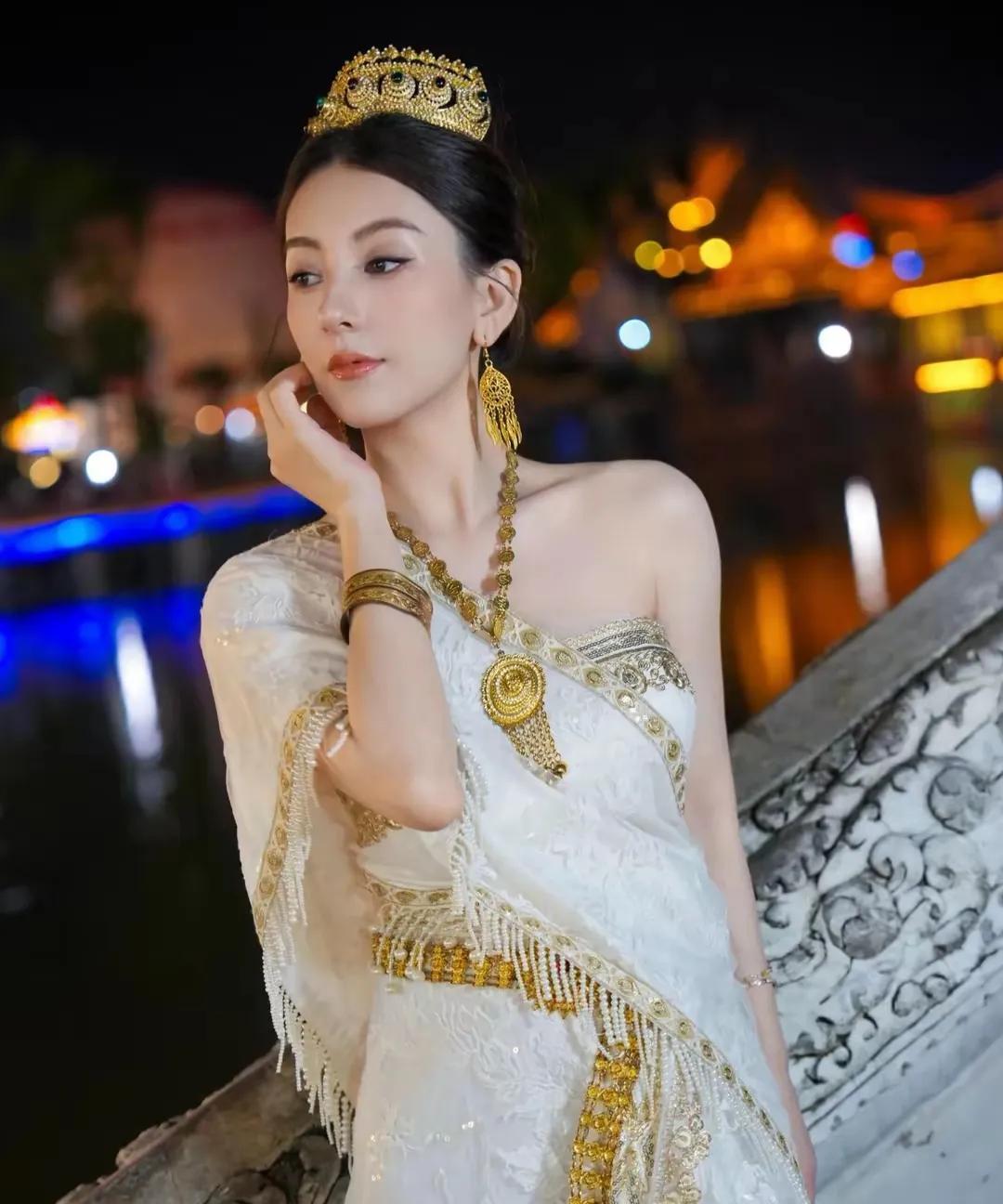 郭富城娇妻方媛怀有三胎,未久居香港,而是前往西双版纳游玩,还拍摄了写真。她身着傣族服饰,头戴金色王冠,一身珠光宝气,肤白貌美。其身材纤瘦,完全看不出孕相,三胎的状态着实不错,天王看中的女人果然不一般。