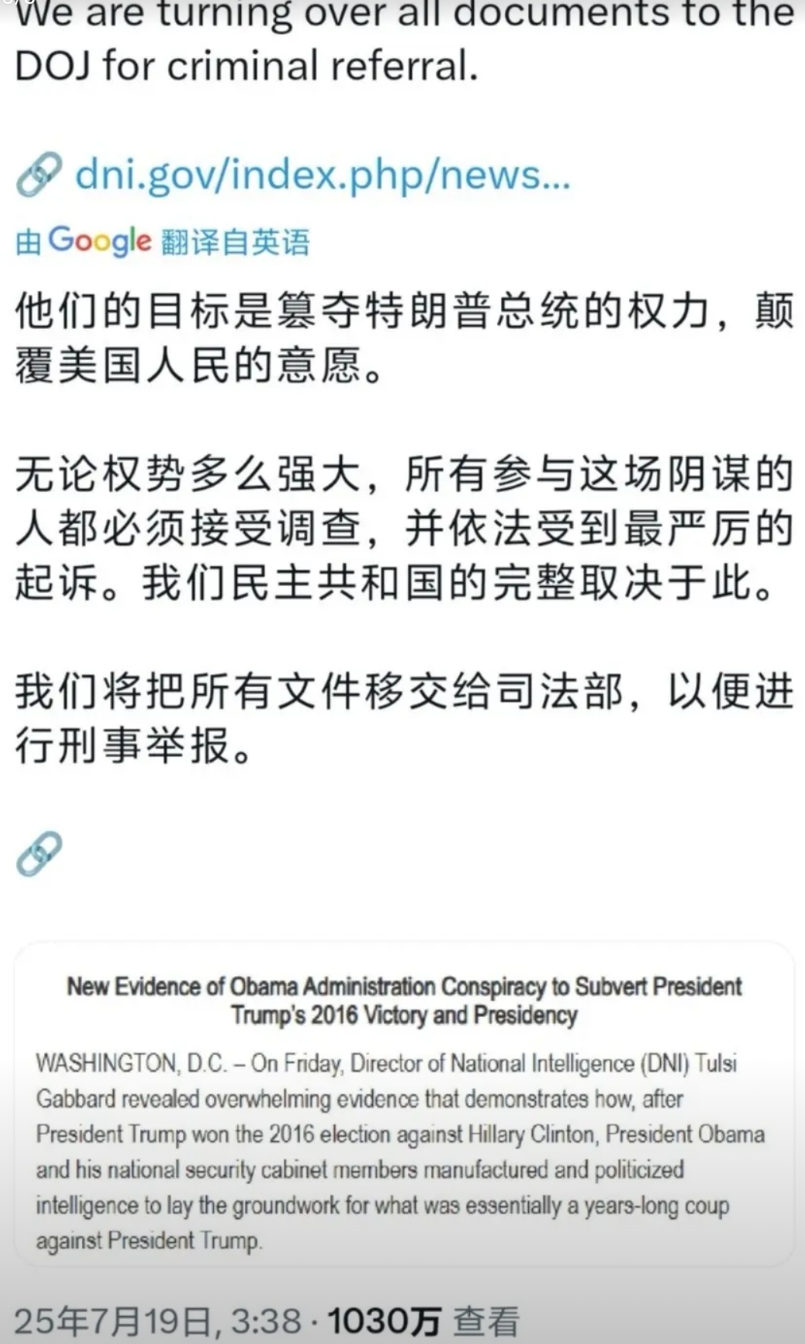 图尔西调查奥巴马叛国罪,美国网友呼吁立即逮捕