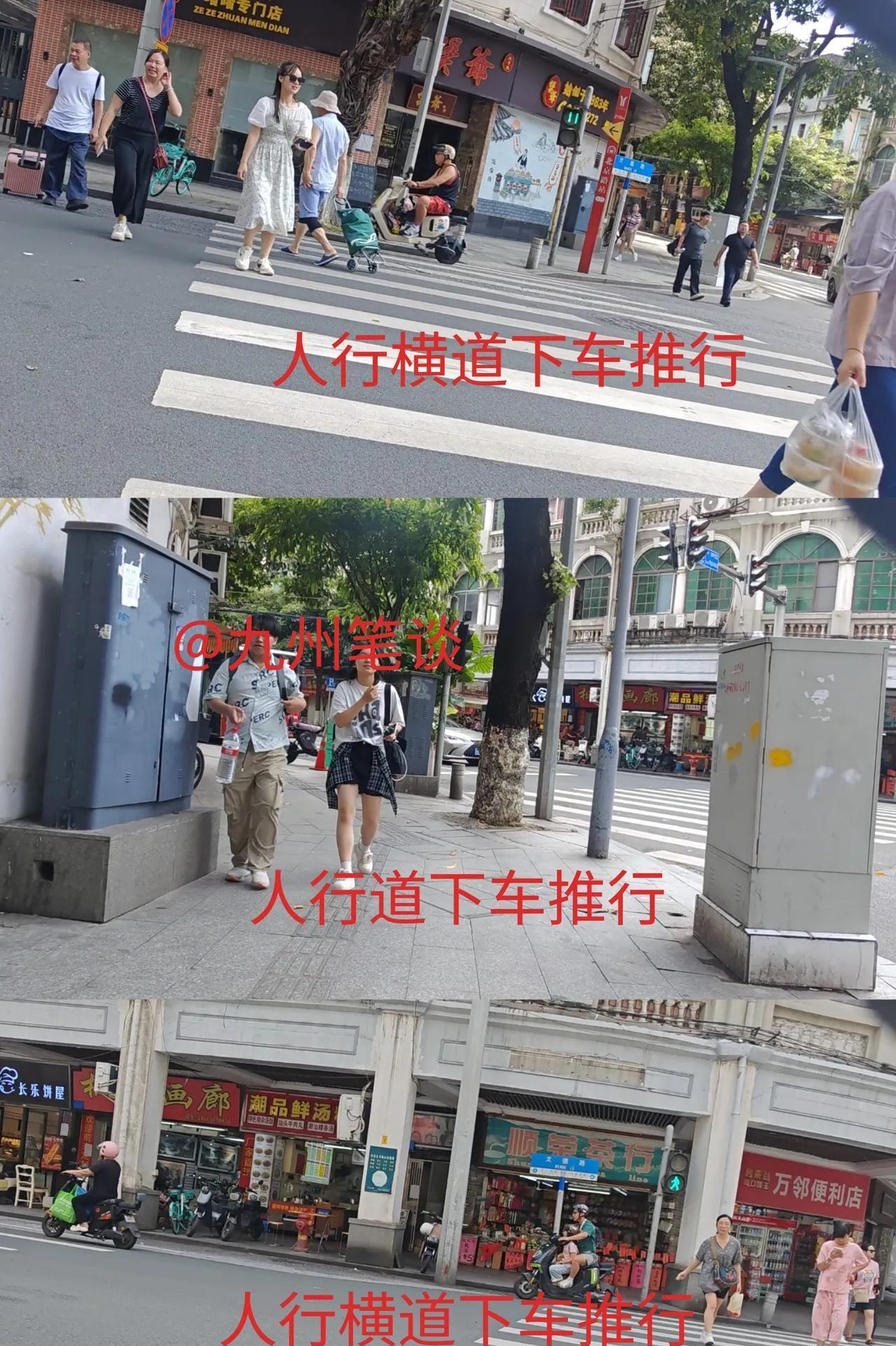 过路口限速支持,汽车也要减速,下车推这种规定就是扯淡多此一举没事找事