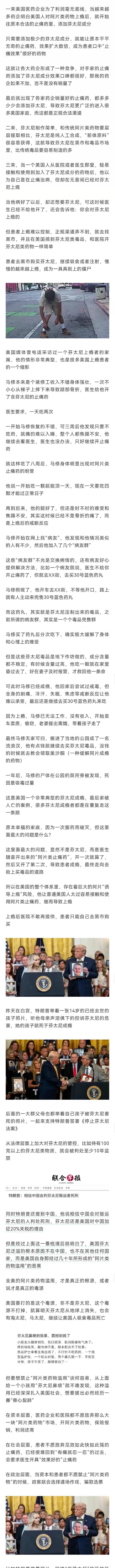 马修的这个例子,看得人又愤怒又无奈。梯子摔下来吃止痛药→医生开了还续→不知不觉上瘾了→正规渠道不给→黑市买假药(成分不明,一颗下去可能人就没了)→妻离子散→流浪汉→最后暴毙街头。 这件事的关键起点,是医生开的药。而美国整个医疗体系,在“无意中”制造了无数个“马修”。从诊所止痛药到街头蓝药丸,这不是个人作死,资本与制度的合谋完成了对普通人的精准屠宰,是系统性的陷人于不义。 当特朗普举着孩子照片甩锅中国,马修们的尸骨却在公园公厕旁腐烂——美国真正要剿灭的不是芬太尼,而是医疗资本、腐败监管、畸形医保组成的噬人三角。 总统换谁上台都得举照片哭一哭、签个法案秀一下。问题根源纹丝不动,马修的悲剧还会发生。整个美国社会像是困在这个毒品和资本的死结里,解不开了,这玩意儿真是从根儿上烂了的感觉。 没有全民禁毒教育的社会,每个普通人都是行走的活体培养皿。