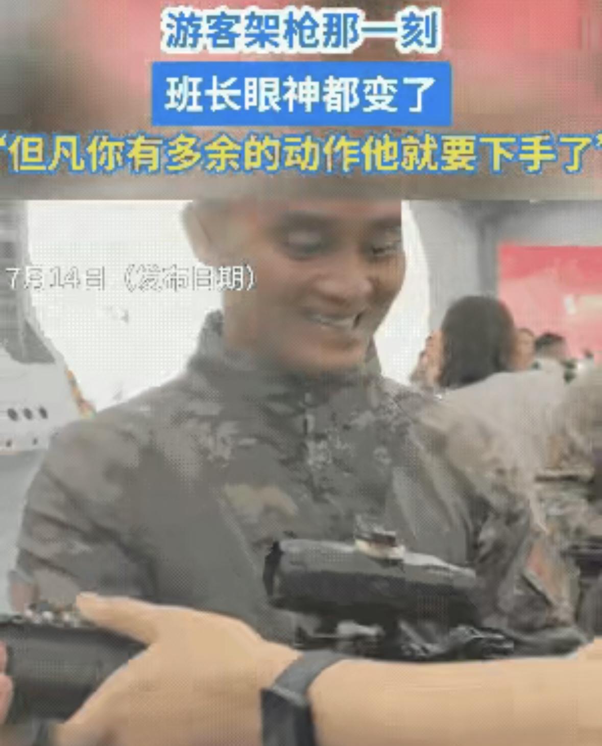 山东舰香港开放日那天,一游客在展台前摆弄枪支,动作太过专业。执勤战士当场警觉,这
