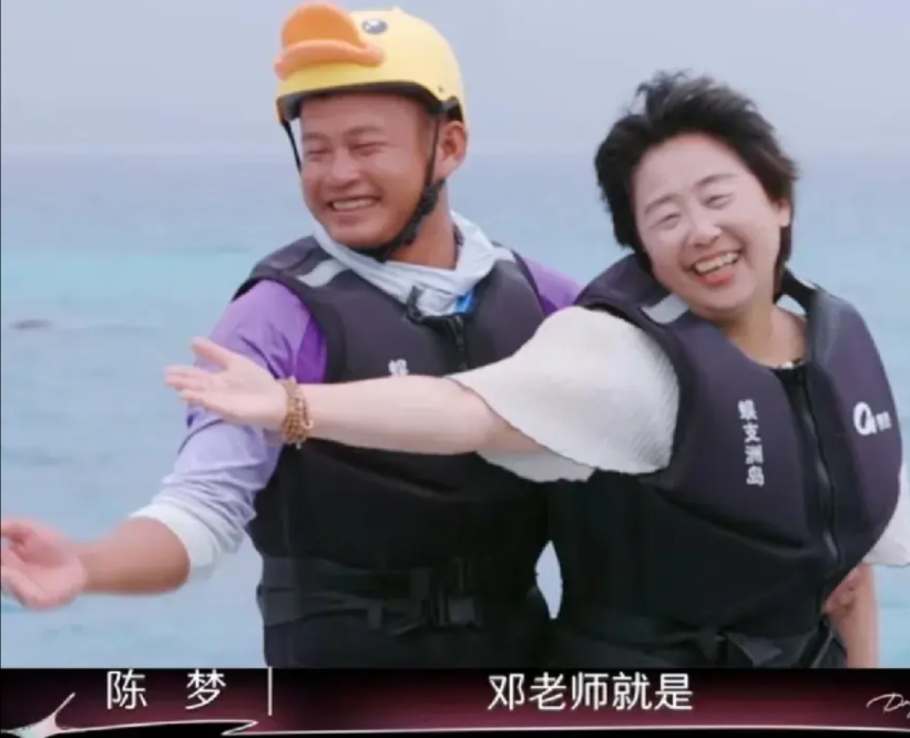 陈梦在岸上都看呆了,十分佩服的说:“邓老师太勇敢,这个年纪了玩这种项目还能如此享受,比我勇敢太多了。”