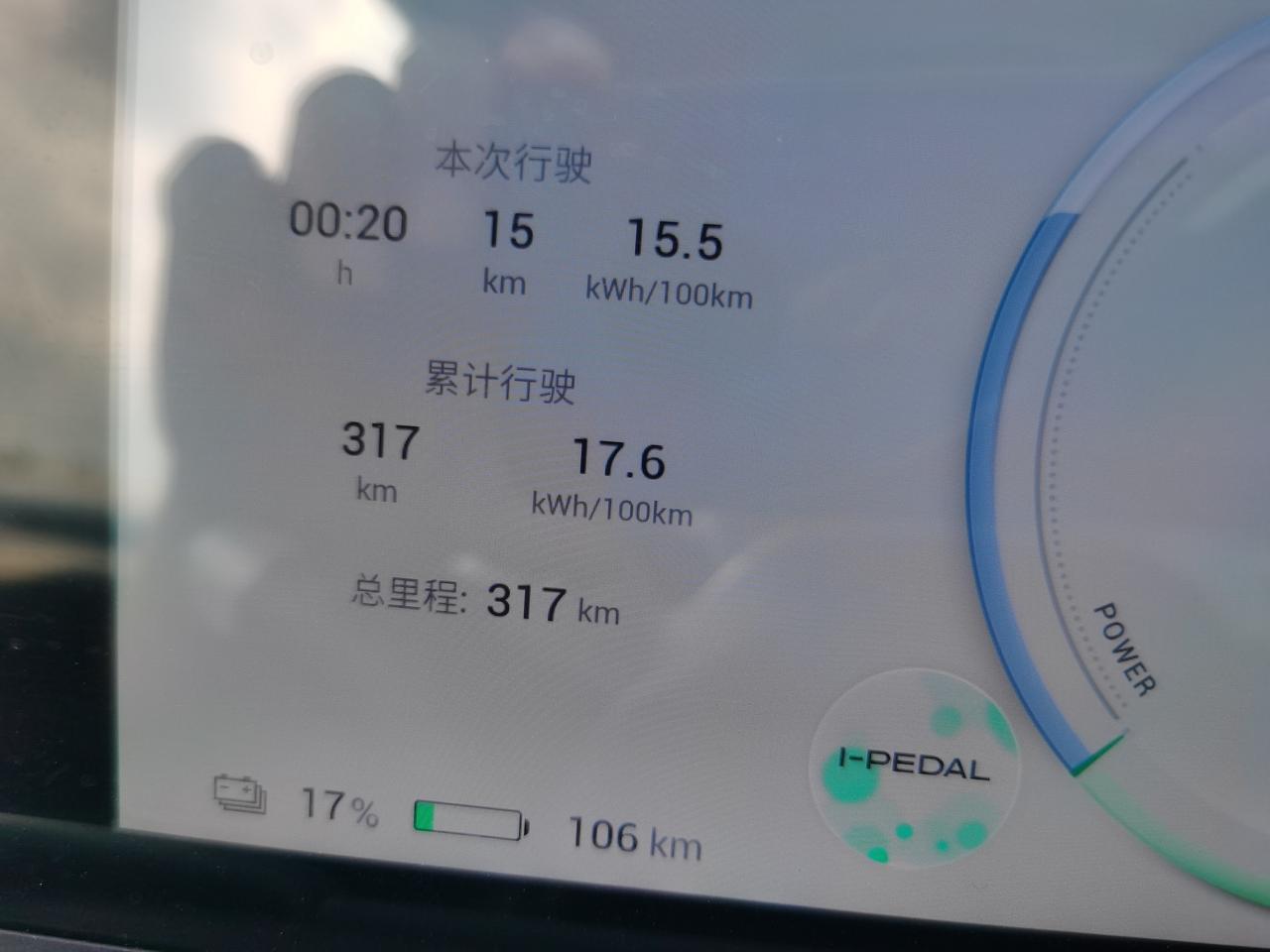 表显596公里,里程数是6公里,结果跑到317公里时显示还剩17%的电剩余里程还有106公里,也就是说490公里的续航跑出了310公里,我的天这也虚标的太严重了吧。达成率才63%,而且这还是夏天,我还用的是ECO节能模式,由于新车有点味道我开窗不用空调的时候还多一些,路况以城乡道路为主,自认为是老司机开车习惯还行很少有猛加减速的动作,大部分都是扶着踏板开,问了4s电说开开电耗就下来了,不知道车友有没有同样的问题,后续用车情况还会继续发布