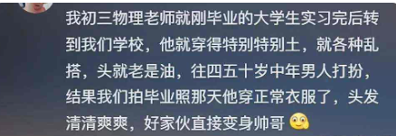 20年前去边疆支教,三十多岁,皮肤好显年轻,教高一,才开学有个女生每天给我办公桌上放个苹果,快一个月吧,觉得不对劲,于是在课堂上不动声色聊到:老师快四十岁年纪什么没见过,balabala,自此,桌上没了苹果[滑稽笑]。女生成绩挺好,目前还有联系,已为人母,大美女一枚。为自己点赞!