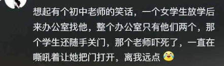 我高中同学,毕业后成了高中英语老师,找女学生谈话,从来只在教室外面的走廊上。这可是在二十年前啊,他竟然就有这种自我保护意识,真佩服他。当年我还笑话他,没想到他竟然这么有预见性!