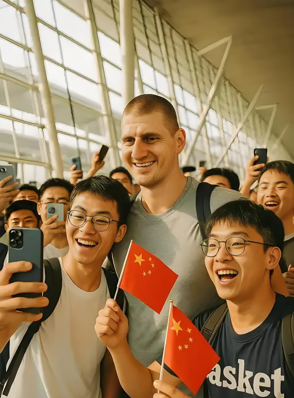 这真是太会整活了!约基奇的中国行今日转战北京。结束石家庄行程后,约老师乘坐高铁北
