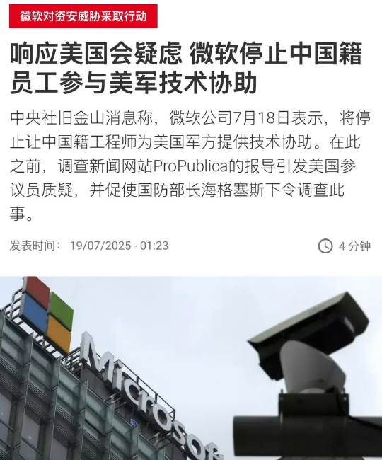 中国工程师维护五角大楼服务器事件越闹越大。微软已经停止所有华人参与美军项目,这事