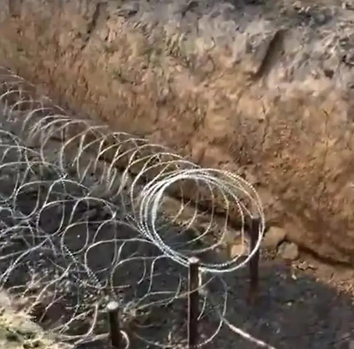 一名乌克兰女孩在顿巴斯地区拍摄了乌军防御工事的照片放到了网上,这让俄军感到高兴,因为可以直观了解乌军防御工事如何配置。龙牙、蛇腹形铁丝网、壕沟,基本是乌军防御工事三件套。壕沟深度约4米,铺设有蛇腹形铁丝网。 网友表示:与现代武器配合,可显著提升整体防御效果。现代化防御工事可以迟滞敌方装甲车辆快速通过,可以分离步兵和支援战车,使其无法协同作战,使得进攻方的火炮无法及时到达支援位置。而在层层防御工事之间的空地则成了防守方打击进攻方的坟场。 现代战争,这玩意儿直接大面积火力压制准备,或调虎离山佯攻,主力方向防雷推土机一推就平 反坦克壕、三角锥、铁丝网、复合雷场,传统的配置